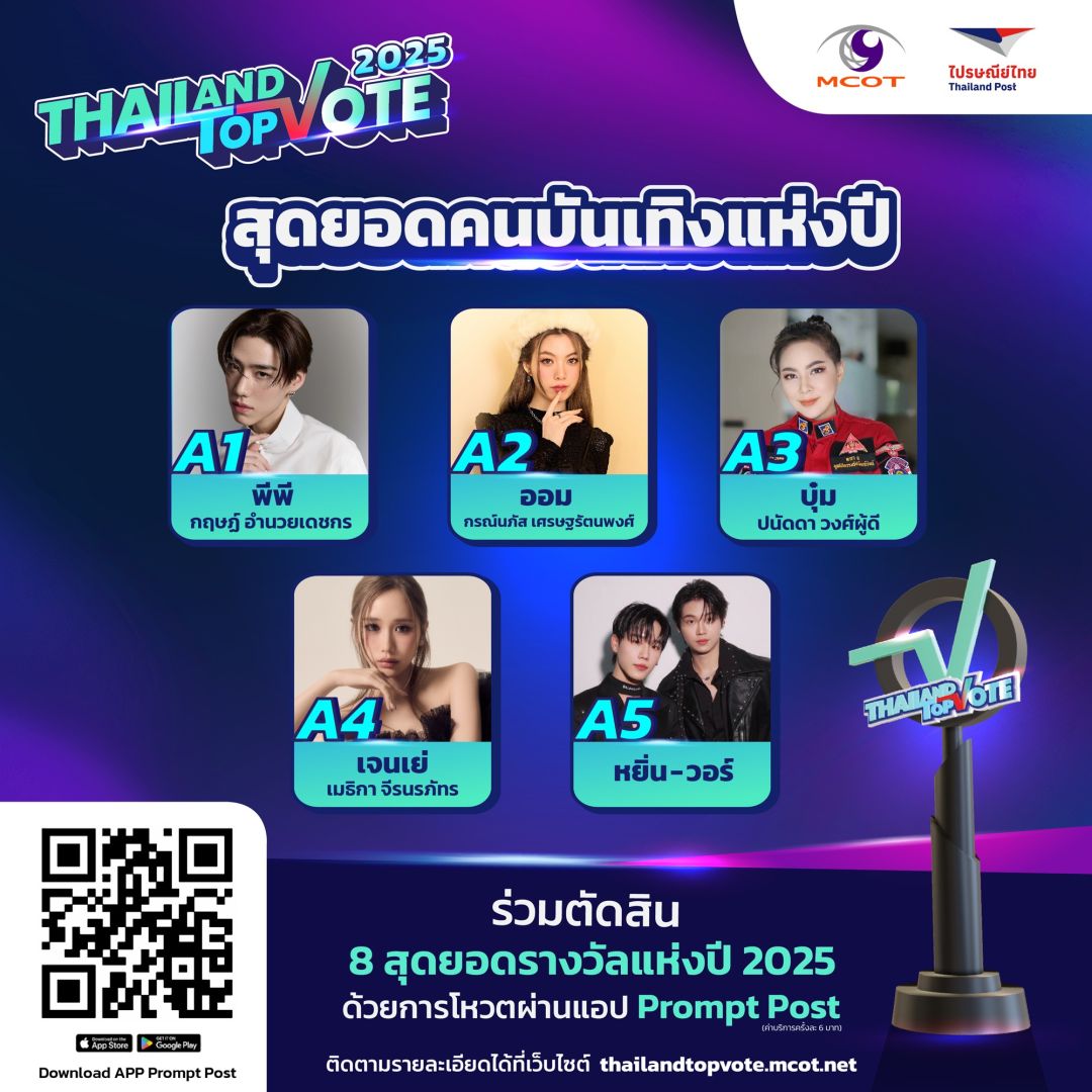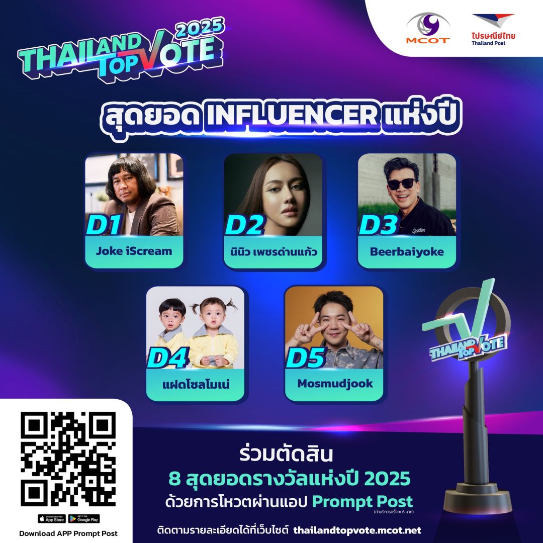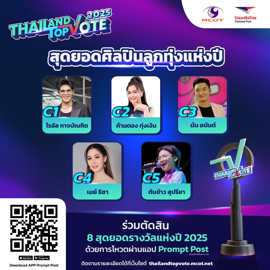 สามารถติดตามกติกาเพิ่มเติมและร่วมเป็นส่วนหนึ่งของรางวัล “Thailand Top Vote 2025” ได้ทาง https://thailandtopvote.mcot.net/