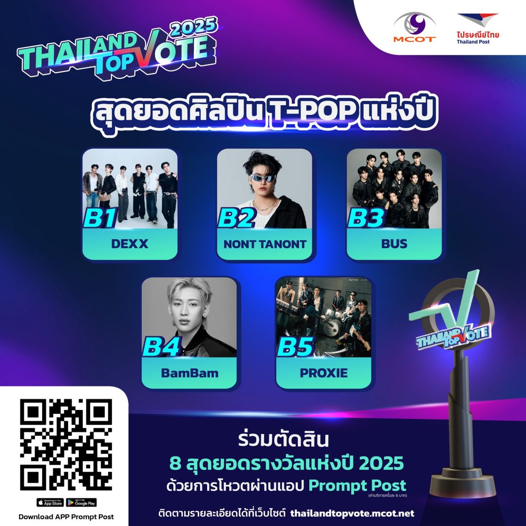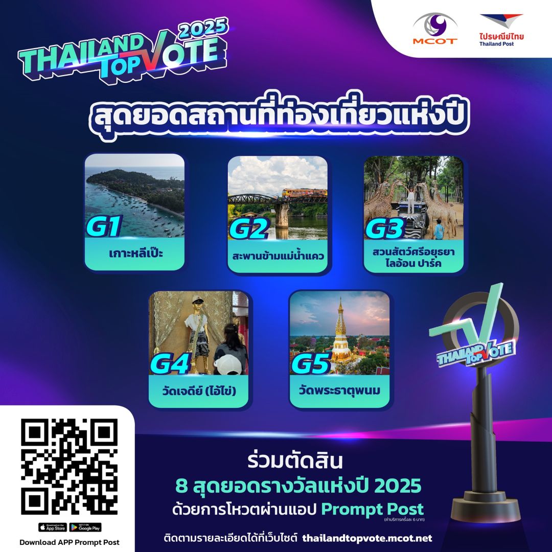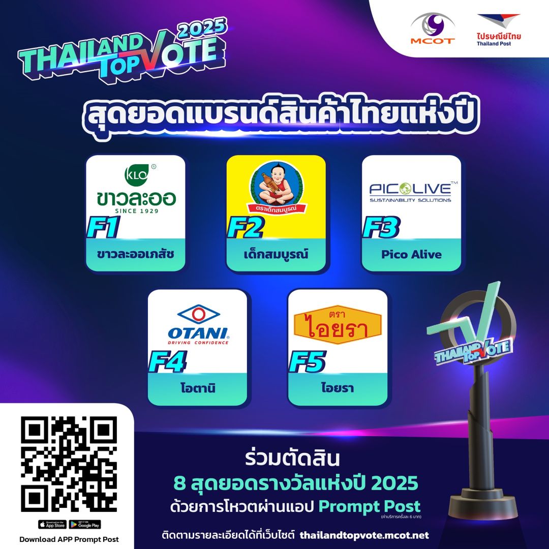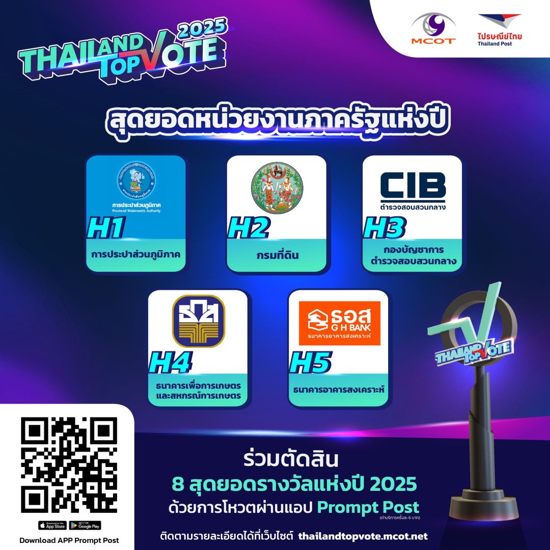 สามารถติดตามกติกาเพิ่มเติมและร่วมเป็นส่วนหนึ่งของรางวัล “Thailand Top Vote 2025” ได้ทาง https://thailandtopvote.mcot.net/