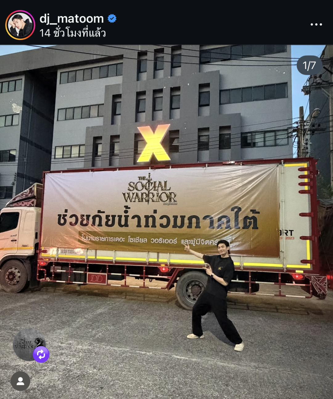 โดยก่อนหน้านี้ทางด้าน “มะตูม เตชินท์” ผู้จัดและเจ้าของรายการ The Social Warrior ก็ไม่ได้นิ่งนอนใจหลังเห็นคนไทยเดือดร้อน รีบใช้สื่อในมือตัวเองที่เป็นพื้นที่กระจายข่าว เพื่อขอการสนับสนุนและระดุมทุนต่างๆ ทั้งดารจัดหาของกินของใช้จำเป็นส่งตรงลงพื้นที่สีแดงที่กำลังเกิดน้ำท่วมทางภาคใต้ในตอนนี้