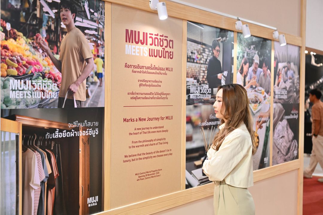 อีกหนึ่งไฮไลท์ของการเปิดตัวครั้งนี้คือนิทรรศการ “MUJI Meets วิถีชีวิตแบบไทย” เพื่อให้ผู้เข้าชมสัมผัสความเรียบง่ายแบบมูจิที่กลมกลืนกับวิถีชีวิตคนไทย พร้อมค้นพบไอเดียการใช้ชีวิตที่สะดวกสบายและสอดคล้องกับสไตล์ของตนเอง โดยรวบรวมสินค้าครบทุกหมวดหมู่ ไม่ว่าจะเป็น สินค้าแฟชั่น เสื้อผ้า เครื่องแต่งกาย ของใช้ในบ้าน เครื่องหอม เครื่องเขียน หรือขนมมูจิสไตล์ไทย ที่จัดขึ้นบริเวณโซน Eden ชั้น 1 ศูนย์การค้าเซ็นทรัลเวิลด์ ระหว่างวันที่ 27 - 30 พฤศจิกายน 2568