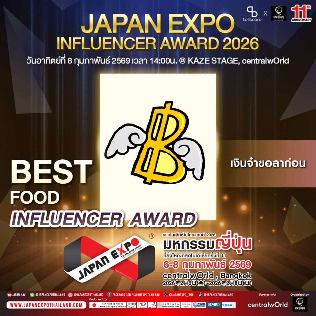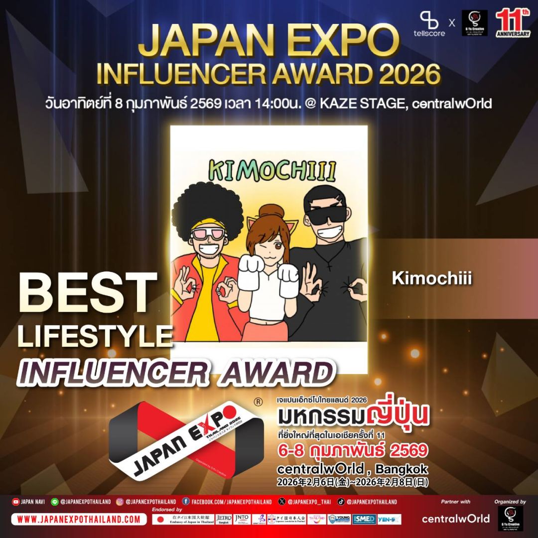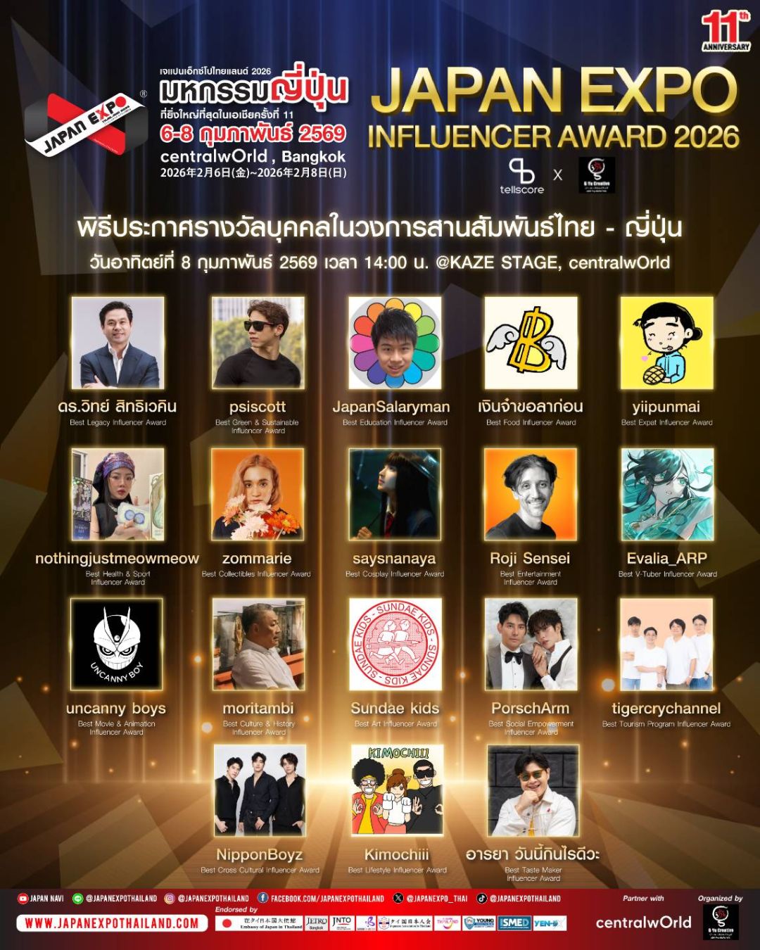 มาร่วมแสดงความยินดี กับเหล่า Influencer ที่ได้รับรางวัล รวมถึงการประกาศรางวัล JAPAN EXPO AWARD 2026 รางวัลอันทรงคุณค่า ที่จะมอบให้กับศิลปินดารา ที่มีบทบาทความเชื่อมโยงมิตรภาพไทย-ญี่ปุ่น มอบรางวัลโดย สถานเอกอัครราชทูตญี่ปุ่นประจำประเทศไทย (Embassy of Japan in Thailand) ซึ่งจะประกาศผลรางวัลในเร็วๆ นี้ แล้วมาเจอกันในงาน JAPAN EXPO THAILAND 2026 ที่เต็มไปด้วยความสนุก ความบันเทิง และกิจกรรมสุดอลังการ ระหว่างวันที่ 6-8 กุมภาพันธ์ 2569 ณ ศูนย์การค้าเซ็นทรัลเวิลด์!