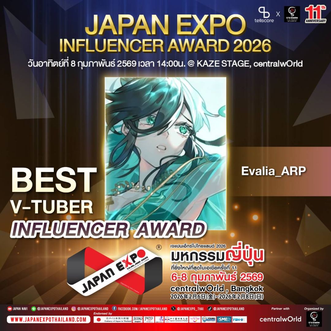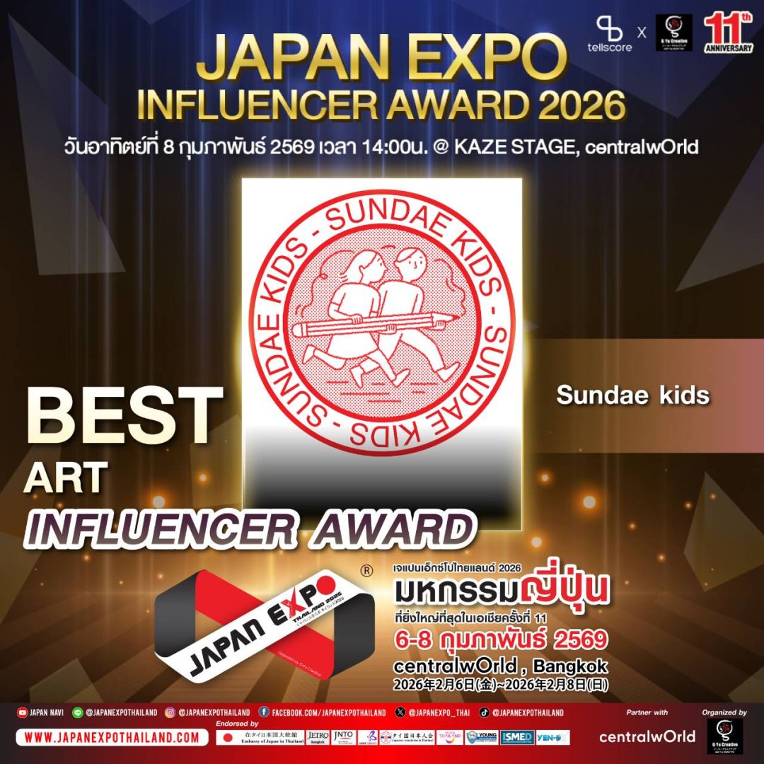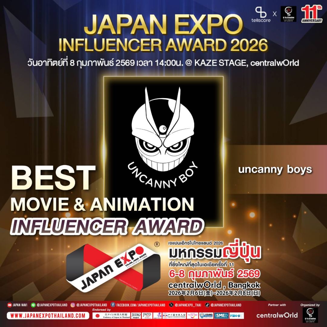 มาร่วมแสดงความยินดี กับเหล่า Influencer ที่ได้รับรางวัล รวมถึงการประกาศรางวัล JAPAN EXPO AWARD 2026 รางวัลอันทรงคุณค่า ที่จะมอบให้กับศิลปินดารา ที่มีบทบาทความเชื่อมโยงมิตรภาพไทย-ญี่ปุ่น มอบรางวัลโดย สถานเอกอัครราชทูตญี่ปุ่นประจำประเทศไทย (Embassy of Japan in Thailand) ซึ่งจะประกาศผลรางวัลในเร็วๆ นี้ แล้วมาเจอกันในงาน JAPAN EXPO THAILAND 2026 ที่เต็มไปด้วยความสนุก ความบันเทิง และกิจกรรมสุดอลังการ ระหว่างวันที่ 6-8 กุมภาพันธ์ 2569 ณ ศูนย์การค้าเซ็นทรัลเวิลด์!