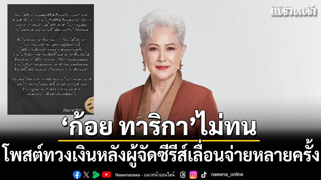 30 พฤศจิกายน 2568 วงการบันเทิงยังคงร้อนแรงเรื่องการทวงเงินค่าตัว ล่าสุด "ก้อย ทาริกา" นักแสดงชื่อดัง ได้ออกมาเคลื่อนไหวผ่านอินสตาแกรม โดยระบุว่า “เรียนแจ้งผู้จัดซีรีส์ท่านหนึ่ง” พร้อมข้อความว่า