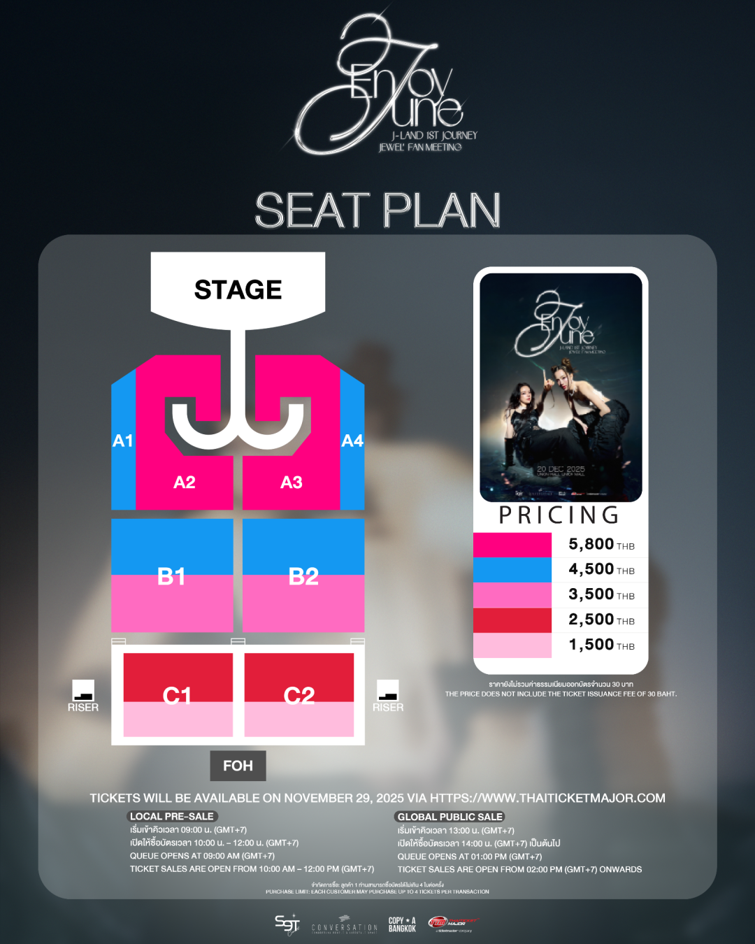 โด่งดังจากการเป็นคู่จิ้นเคมีแรงจากซีรีส์ GL เรื่อง “รินไม่มีวันรัก” (Denied Love Series) จนกลายเป็นขวัญใจสาววายทั่วทุกสารทิศ สำหรับ 2 นักแสดงสาว “เอนจอย ธิดารัตน์ ปรือทอง” และ “จูน ณัณณิริณ วโรกรวัชรคุณ” และตอนนี้ทั้งคู่พร้อมแล้วที่จะมาเสิร์ฟความฟินให้กับแฟนๆ ในงานแฟนมีตติ้งคู่ครั้งแรกในประเทศไทย กับงานที่ชื่อว่า “ENJOYJUNE 'J-LAND 1ST JOURNEY - JEWEL' FAN MEETING” ซึ่งจะจัดขึ้นในวันเสาร์ที่ 20 ธันวาคม 2568 นี้ ณ ยูเนี่ยน ฮอลล์ ชั้น F6 ศูนย์การค้ายูเนี่ยน มอลล์ (Union hall, Union Mall) งานนี้สองสาว “เอนจอย-จูน” การันตีว่าพร้อมเสิร์ฟโชว์สุดเอ็กซ์คลูซีฟ และโมเมนต์สุดฟินให้ได้ฮ็อปกันอย่างเต็มที่แน่นอน โดยจะเริ่มจำหน่ายบัตรในวันเสาร์ที่ 29 พฤศจิกายน นี้ทาง www.thaiticketmajor.com ราคาบัตร: 5,800 / 4,500 / 3,500 / 2,500 และ 1,500 บาท สำหรับรอบการจำหน่ายบัตรนั้นมี 2 รอบเวลาดังนี้ รอบ LOCAL PRE-SALE: เวลา 10:00 - 12:00 น. และ รอบ GLOBAL PUBLIC SALE: เวลา 14:00 น. เป็นต้นไป