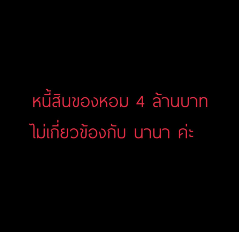 ล่าสุด ดีเจต้นหอม ได้ออกมาโพสต์ภาพข้อความชี้แจงอย่างชัดเจนผ่านอินสตาแกรม ระบุว่า “หนี้สินของหอม 4 ล้านบาท ไม่เกี่ยวข้องกับ นานา ค่ะ”
