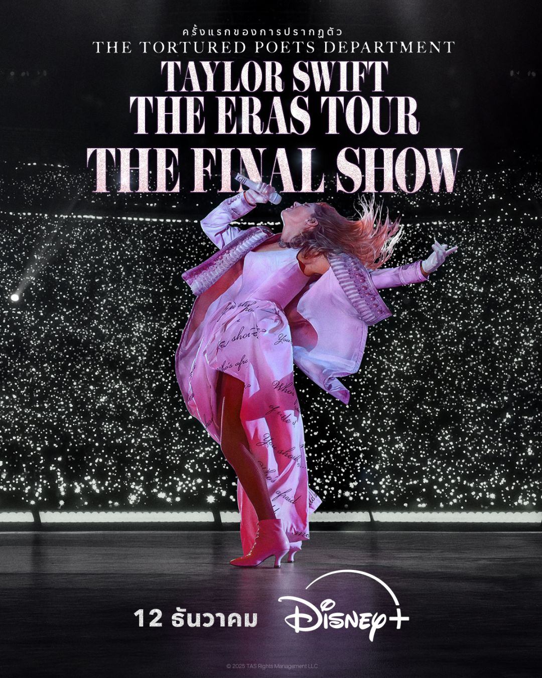 Disney+ ปล่อยตัวอย่างใหม่ของคอนเสิร์ตฟิล์ม “Taylor Swift | The Eras Tour | The Final Show” จากศิลปินเจ้าของรางวัล GRAMMY® 14 สมัย ให้ดาวน์โหลดและแชร์ได้แล้ววันนี้ ก่อนเตรียมสตรีมอย่างเป็นทางการในวันที่ 12 ธันวาคมนี้ บน Disney+ เท่านั้น