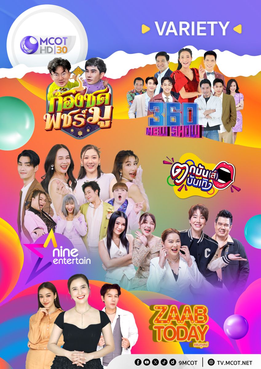 “เตรียมพบกับ Contemporary ที่หลากหลายสไตล์ที่ช่อง 9 ซึ่งเราจัดสรรมาให้แฟนหน้าจอเพียบครับ เริ่มที่รายการวาไรตี้บันเทิง ยอดนิยม ทุกวันจันทร์-พฤหัสบดี เวลา 10.30 น. พบกับรายการ 360 องศา New Show (Live) ดำเนินรายการโดย ธนินวัฒน์ พัฒนวีรคุณ, ดร.วีรินทร์ทิรา, รศ.ดร.ธนวรรธน์ นาทองบ่อจรัส, ปอ-อรรณพ, เชน-ธวัชสรรค์, คำรณ หว่างหวังศรี, ปุ๊-พัชริญภรณ์, ศรุญศธร ธนวัชรวัฒน์, ชวิน ลิขิตเจริญสกุล และเวลา 14.00 น. #Zaabในกระแส ในรายการ ZAAB TODAY (Live) กับ ชมพู่-ธัณย์สิตา, กอล์ฟ-เบญจพล, มิลค์-เขมสรณ์ ทุกวันจันทร์-ศุกร์ เวลา 11.00 น. เม้าท์ไปชิมไปกับ ก้อง-ปิยะ เศวตพิกุล และ พชร์-อานนท์ ในรายการ ก้องซด พชร์มู (Live) เวลา 11.30 น. พบกับรายการไนน์เอ็นเตอร์เทน (Live) โดยมี ฝน-นันทกา, แป๋ว-พัทรวี, เต๋อ-รัฐนันท์, อร-พัทธ์ธีรา, ใบเตย-พรพจี, หว่าหวา-วัชรพงศ์, พีชกีกี-กีรติ, บอสซี่-ไชยวัฒน์