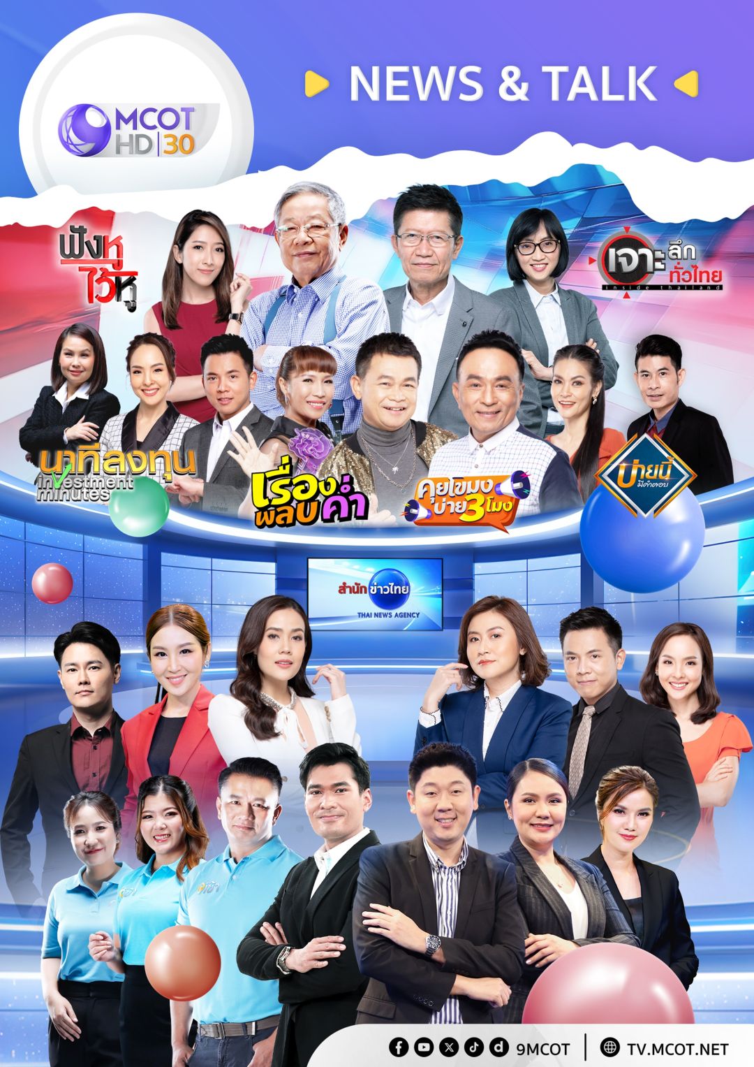 เริ่มด้วยรายการ 9 ข่าวเช้า, รายการ 9 ข่าวเที่ยง, รายการ 9 ข่าวค่ำ, รายการ คับข่าว 9, คู่ข่าวเสาร์-อาทิตย์ โดยผู้ประกาศ ดรีม-ภัทรดนัย, โอ๊ต-รัตติยา เรืองขจร, แอน-พจนารถ, เจี๊ยบ-ณรงค์, ภัส-นภัส, หนอยแน่-วาเนสสา, เปิ้ล-กุลธิดา, นุ้ย-สุตา, ตั่ว-สุทิวัส, จิ๊บ-วรรณศิริ, ปลา-กมลเนตร, ด้ง-จามร, ตั๊ก-อรวรรณ และพบกับรายการ Talk ขวัญใจมวลชน ทุกวันจันทร์-ศุกร์ เวลา 8.00 น.พบกับ ดนัย เอกมหาสวัสดิ์ และอมรรัตน์ มหิทธิรุกข์ ในรายการเจาะลึกทั่วไทย Inside Thailand (Live) เวลา 9.30 น. พบกับ ตั่ว-สุทิวัส, นุ้ย-สุตา, นง-นงวดี ในรายการนาทีลงทุน (Live) เวลา 15.00 น.พบกับ สุวิช สุทธิประภา และ หนึ่ง-นีรชา ในรายการคุยโขมงบ่าย 3 โมง (Live) เวลา 17.00 น. พบกับ กำภู ภูริภูวดล และรัชนีย์ สุทธิธรรม ในรายการเรื่องพลบค่ำ (Live) เวลา 20.50 น. พบกับ อาจารย์วีระ ธีรภัทร และนุ่น-ชุติมา ในรายการ ฟังหูไว้หู และทุกวันศุกร์ เวลา 13.00 น. พบกับ บอล-ธีรวัฒน์ และนุ่น-ชุติมา ในรายการบ่ายนี้มีคำตอบ (Live)”