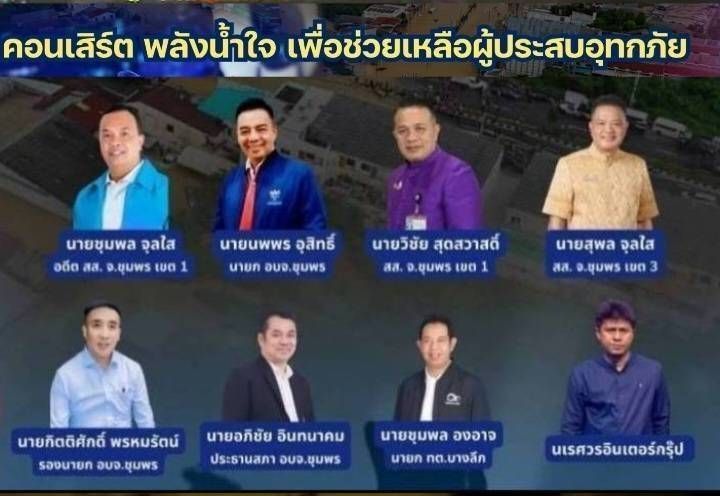 วานนี้ นายกโต้ง – นายนพพร อุสิทธิ์ นายกองค์การบริหารส่วนจังหวัดชุมพร พร้อมทั้ง นายชุมพล จุลไส อดีต สส. จ.ชุมพร เขต 1 นายวิชัย สุดสวาสดิ์ สส. จ.ชุมพร เขต 1 นายนพพร อุสิทธิ์ นายก อบจ.ชุมพร นาย สุรพล จุลใส สส. จ.ชุมพร เขต3 ได้ร่วมกันจัดกิจกรรมคอนเสิร์ตการกุศล "พลังน้ำใจ เพื่อช่วยเหลือผู้ประสบอุทกภัย” ช่วยเหลือผู้ประสบอุทกภัยพี่น้องทางภาคใต้ สำหรับงานคอนเสิร์ตการกุศล "พลังน้ำใจ เพื่อช่วยเหลือผู้ประสบอุทกภัย” ในวันนั้นจัดได้ว่าเป็นการรวมตัวของน้องรักนักร้องเมืองใต้แดนสะตอที่โคจรมาร่วมงานกันอย่างคับคั่ง นอจากจะได้สนุกสนานฟังเพลงจาก หลวงไก่ และบ่าววี ยังมี เจี๊ยบ- เบญจพร,นุ้ย-สุวีนา,อ๊อฟ ดอกฟ้า - เมนทอล - บอย พาโล - วงสาราญ - คิว สราวุฒ - นิล แทมมะริน- เบนซ์ จริยา - เต็มนาวา - บีบี คัพเค้ก, -เฟียส - เกมส์ ยุทธนา - เล็กบูรพา - น้อย แสตมป์ - วงลูกแกะ - ต๊ะ กิตติศักดิ์ - อู๊ด หัวลำโพง- หลวงเอก ชุมพร สวัสดี ‘หมึก มายา’ ปธ.ชมรมเพื่อนสื่อมวลชนสร้างสรรค์ประเทศไทย รายงาน