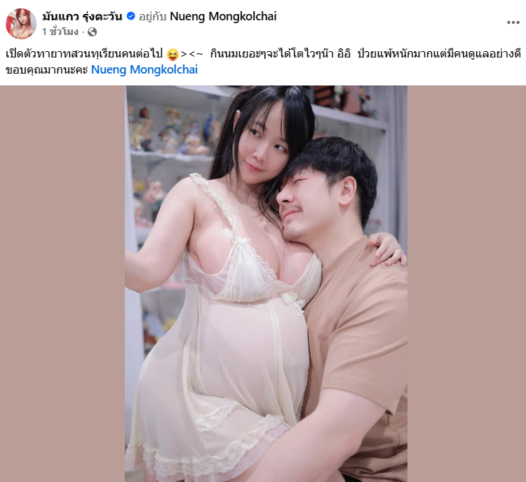 สำหรับ มันแกว รุ่งตะวัน ชัยหา เป็นที่รู้จักในฐานะเน็ตไอดอลและนางแบบที่มีผลงานมากมาย ซึ่งการประกาศข่าวดีครั้งนี้ถือเป็นการเริ่มต้นบทบาทใหม่ที่สำคัญในชีวิตของเธอในฐานะว่าที่คุณแม่