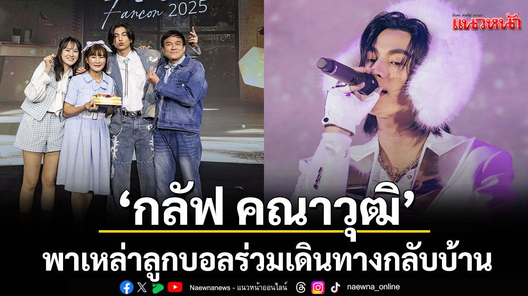 ฮอตงานรุมสุดทุกบทบาท สำหรับซุปตาร์หนุ่ม กลัฟ-คณาวุฒิ ไตรพิพัฒนพงษ์ ล่าสุดพาเหรดผลงานเสิร์ฟแฟนคลับให้ได้ติดตามกันหลากรูปแบบครบทั้งงานพรีเซ็นเตอร์และงานอีเว้นต์ที่คิวยาวต่อเนื่อง รวมถึงผลงานการแสดง ฮือฮาสุด ๆ กับละครฟอร์มยักษ์เรื่อง ตะวันลวง ที่เปิดตัวสุดปังด้วยการประกบนางเอกสุดฮอต ญาญ่า-อุรัสยา และพระเอกหนุ่ม เก้า-นพเก้า นอกงานละครแล้วมีภาพยนตร์จ่อคิวฉายอีกหนึ่งเรื่องอย่าง อัศจรรย์วันทอง โดยร่วมงานกับนักแสดงนำจอสระอึ้ง หมาก-ปริญ และ อิ้งค์-วรันธร แว่วว่าหนุ่มฮอตเนื้อหอมของเราพลิกคาแรกเตอร์อะไรใหม่ ๆ เตรียมลงจอให้ได้ชมกันในปี 2026 แต่ที่ไม่ต้องรอถึงปีหน้าคือแฟนคอนที่เจ้าตัวก็มอบความสุขส่งท้ายปีให้แฟนคลับ Gulf Eternal Fancon 2025 : Back to our Home ที่จัดขึ้นเมื่อวันอาทิตย์ที่ 14 ธันวาคม ที่ผ่านมา ณ MCC HALL เดอะมอลล์ ไลฟ์ สโตร์ บางกะปิ ท่ามกลางรอยยิ้มและความสุขตลอดทั้งงาน แถมปีนี้แฟนคลับทั่วทุกมุมโลกส่งของขวัญมาเซอร์ไพรส์ให้กับหนุ่มกลัฟถึงแฟนคอนต้อนรับการกลับบ้านด้วย Opening Show สุดอบอุ่น โดยหนุ่มกลัฟเลือกเพลงเพราะความหมายดี “HOME” พาทุกคนเดินทางกลับมายังความทรงจำที่คิดถึง ตามมาด้วยอีกหลายเพลงฮิต ออกสตาร์ทโมเมนต์แรกของแฟนคอนได้อินสุด ๆ จากนั้นดับเบิลความสนุกกันต่อในพาร์ทที่สอง ได้เหล่าเดอะแก๊งค์มาร่วมเอนเตอร์เทนแฟน ๆ ร้อง เล่น เต้น โชว์ จัดเต็ม เริ่มต้นด้วยสาวเสียงใส อิงโกะ PiXXiE ที่ตกปากรับคำมาขึ้นเวทีร่วมโชว์ในฐานะน้องสาวเพื่อนสนิทของหนุ่มกลัฟ พร้อมแจกความสดใสด้วยเพลง “จักรวาลไหน” และ “เกินต้าน” จากนั้นถึงคิวของเพื่อนซี้ สมิธ-ภาสวิชญ์ ที่สวมวิญญาณร็อกเกอร์มาดเท่โชว์เพลง “คิดถึง” ของ “หรั่ง ร็อกเคสตร้า”ก่อนพูดคุยกันอย่างสนุกสนาน ส่วนอีกแก๊งค์ที่เรียกเสียงกรี๊ดสนั่นฮอลล์ คงต้องยกให้กับทีมนักแสดงจากซีรีส์บอยเลิฟในตำนาน ธารไทป์ เดอะซีรีส์ ซีซัน 1 และ 2 ขนเพื่อนนักแสดง ตี๋มายด์-จิณณะ, ก้าวหน้า-กิตติภัทร และ จา-พชร มาร่วมย้อนความทรงจำด้วยเพลง “ไม่ยอม” เพลงฮิตประกอบซีรีส์แจ้งเกิดของเจ้าตัว พร้อมจับเข่าเมาท์แฟ่ด จากนั้นต่อติดความสนุกกันด้วยการเล่นเกมกับเหล่าผู้โชคดี แถมงานนี้ยังได้พิธีกรอารมณ์ ป๊อปปี้-รัชพงศ์ และ เจนนี่ ปาหนัน มาปั่นป่วนชวนฮา ร่วมเอนเตอร์เทนแฟน ๆ ร้อง เล่น เต้น โชว์ จัดเต็ม