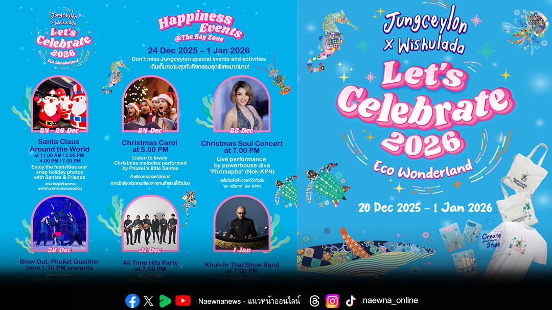 ศูนย์การค้าจังซีลอน ป่าตอง ภูเก็ต ร่วมเฉลิมฉลองเทศกาลคริสต์มาสและปีใหม่นี้ ภายใต้คอนเซ็ปต์ “Eco Wonderland” ร่วมตกแต่งบรรยากาศภายในศูนย์การค้าให้สวยงาม ด้วยผลงานศิลปะอัพไซเคิลจากขยะทะเลและวัสดุเหลือใช้ในครัวเรือน พร้อมส่งโปรโมชั่นพิเศษส่งท้ายปี 2568 “Craft Your Eco Style” กิจกรรม DIY Workshop สุดสร้างสรรค์ เมื่อช้อปสินค้าภายในศูนย์การค้าครบทุก 3,000 และ 5,000 บาท รับสิทธิ์ร่วมกิจกรรมตกแต่งเสื้อยืด หรือกระเป๋ารีไซเคิลจากขวดพลาสติก ในสไตล์ของตัวเองที่มีเพียงชิ้นเดียวในโลก พร้อมรับกลับฟรี! นอกจากนั้นเพียงโพสต์ภาพถ่ายในโซเชียลมีเดียของคุณคู่กับผลงานศิลปะที่ตกแต่งภายในศูนย์การค้าจังซีลอน พร้อมติดแฮชแท็ก #JungceylonEcoWonderland แล้วมาแสดงที่บูธ Tourist Privilege โซนเดอะเบย์ อารีน่า รับทันที! กระเป๋าช้างแสนน่ารัก ตั้งแต่วันนี้ - 15 ม.ค. 69 หรือจนกว่าของจะหมด แล้วมาร่วมเฉลิมฉลองช่วงเวลาแห่งความสุขไปพร้อมกันกับขบวนความบันเทิงและกิจกรรมพิเศษมากมาย อาทิ