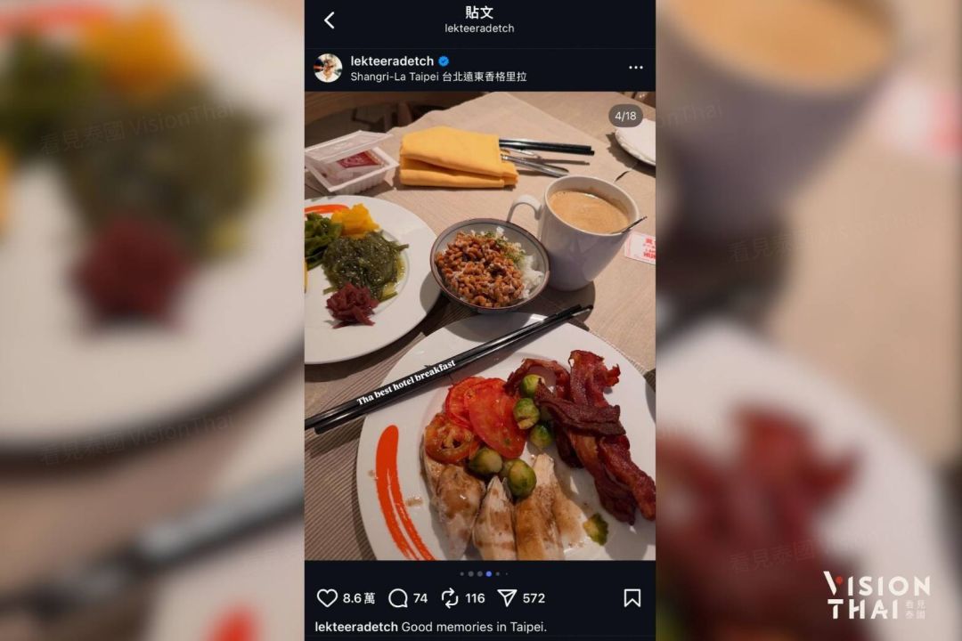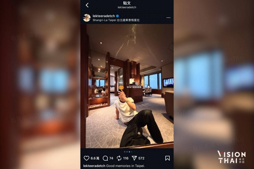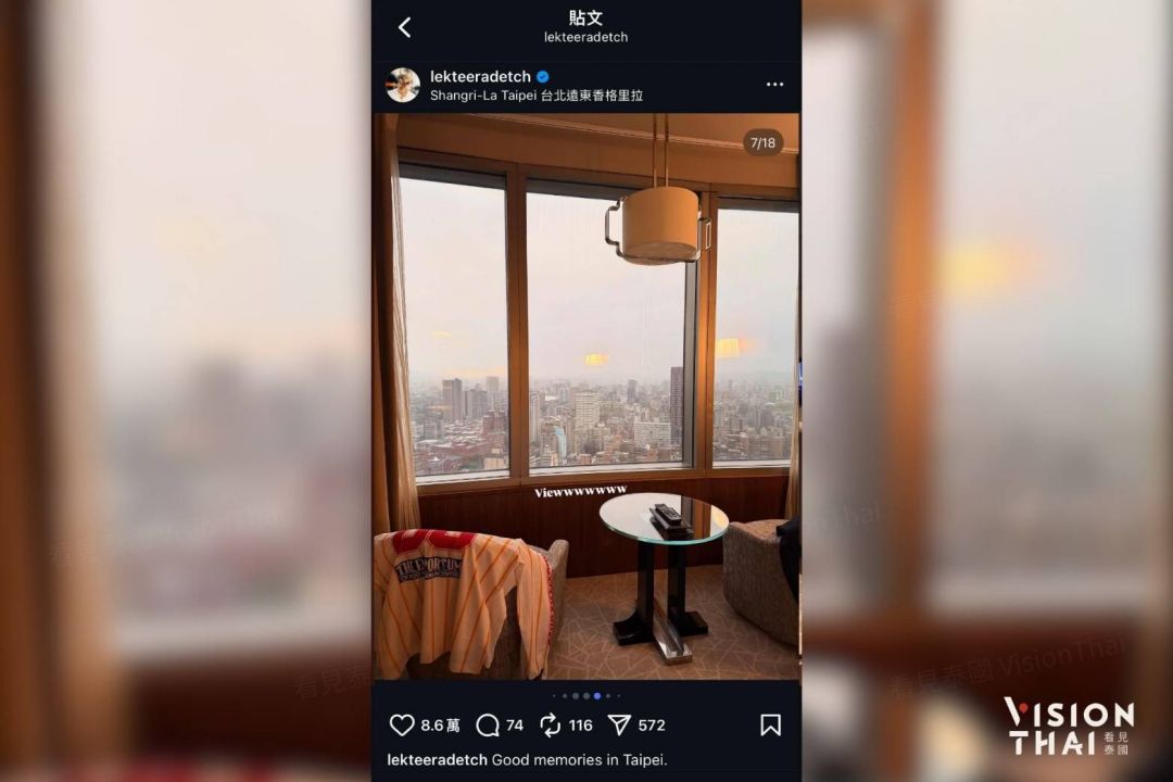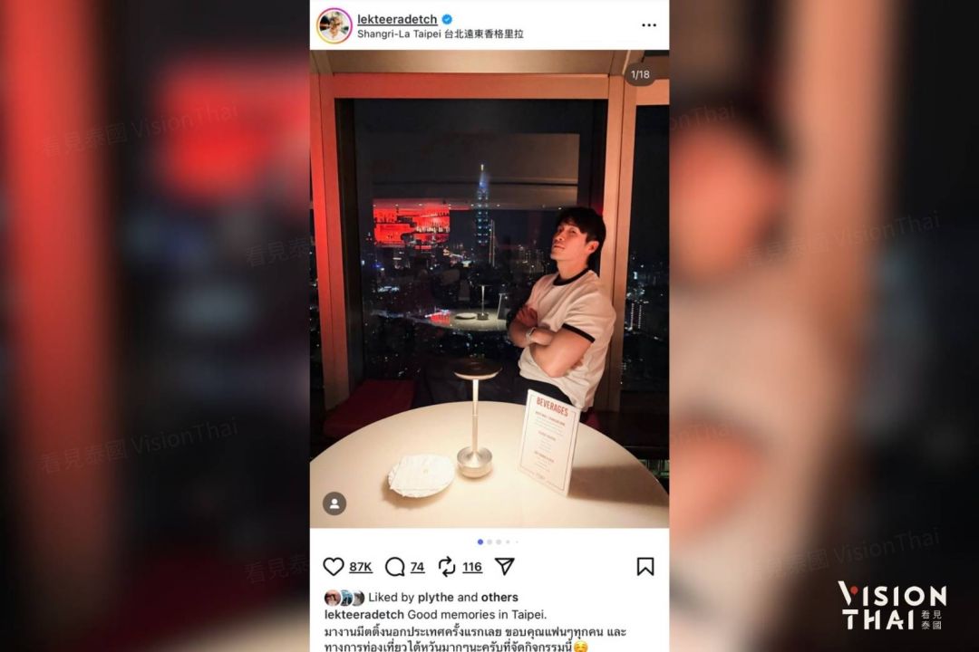 “อาเล็ก-ธีรเดช เมธาวรายุทธ” นักแสดงไทยชื่อดัง ดีกรีแบรนด์แอมบาสเดอร์การท่องเที่ยวไต้หวันประจำประเทศไทย ปี พ.ศ. 2568 ได้พาแฟนคลับชาวไทยกว่า 300 คนเดินทางไปเข้าร่วมงานแฟนมีตติ้งในต่างประเทศครั้งแรก ณ กรุงไทเป เมื่อช่วงปลายเดือนตุลาคมที่ผ่านมา ซึ่งการมาเยือนกรุงไทเปในครั้งนี้ อาเล็ก-ธีรเดช ได้เข้าพักที่โรงแรมแชงกรี-ลา ฟาร์อีสเทิร์น ไทเป พร้อมถ่ายรูปเช็กอินคู่กับตึกไทเป 101 จาก Marco Polo Lounge ชั้น 38 ของโรงแรม ด้วยท่าทางสบาย ๆ ภายใต้แสงไฟยามค่ำคืน แตกต่างจากบทบาทล่าสุดที่ได้รับในภาพยนตร์แนวสยองขวัญอย่าง “ข้างบ้าน” การเข้าพักครั้งนี้ได้รับการสนับสนุนจาก ชิต ลี (เต๋อ) ผู้ก่อตั้งสื่อภาษาจีนในประเทศไทยอย่าง Vision Thai 看見泰國 และหนึ่งในผู้ได้รับรางวัล 10 เยาวชนดีเด่นชาวจีนโพ้นทะเลแห่งสาธารณรัฐจีน (ไต้หวัน) ครั้งที่ 6 และโรงแรมแห่งนี้ยังเป็นสถานที่จัดงานแต่งงานของเขาเมื่อ 10 ปีก่อนด้วยเช่นกัน