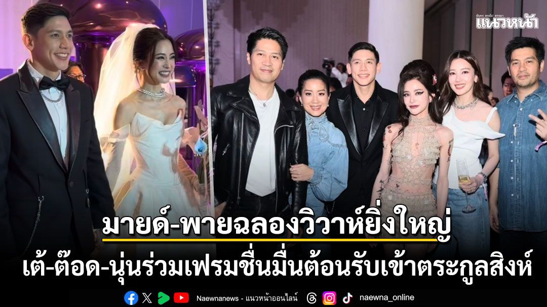 20 ธันวาคม 2568 เรียกว่าเป็นงานรวมพลคนดังระดับประเทศเลยทีเดียว สำหรับงานวิวาห์สุดอลังการของนางเอกสาว 'มายด์ ลภัสลัล' และหวานใจ 'พาย สุนิษฐ์ สก็อต' ทายาทตระกูลดัง ภิรมย์ภักดี ที่จัดขึ้นท่ามกลางบรรยากาศสุดชื่นมื่นและเต็มไปด้วยความสนุกสนานกับธีมงานที่ทั้งคู่ ได้เนรมิตงานให้เป็น Music Festival 2025 ซึ่งบ่งบอกถึงความเป็นตัวของตัวเองของคู่บ่าวสาวสุดๆ