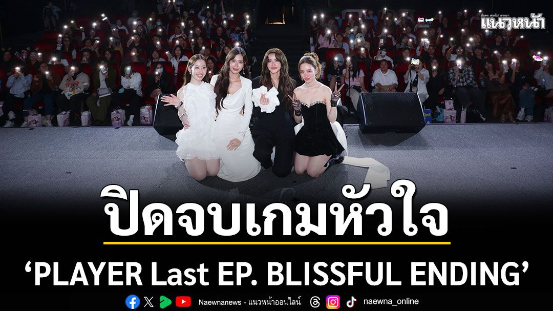 เดินทางร่วมลุ้นเกมหัวใจสุดเข้มข้นกันมาจนถึงโค้งสุดท้ายกันแล้ว สำหรับซีรีส์ “Player ไม่อาจห้ามรัก” จากค่าย “HeartPop Studio” ก็ขอส่งท้ายความปังแบบต่อเนื่องกับงาน “PLAYER Last EP. BLISSFUL ENDING” ชวนแฟน ๆ มาจอยโมเมนต์สุดพิเศษร่วมรับชมตอนจบกับนักแสดงนำสุดฮอต “ไอซ์ อมีนา - มีมี่ เหมือนฝัน” และ “เกรซ ฮาร์เปอร์ - หนิงหนิง มาริกา” กันอย่างใกล้ชิด ซึ่งทำเอา Phenix Auditorium Hall คึกคักไปด้วยเหล่าแฟน ๆ ทั้งชาวไทย และชาวต่างชาติที่มาให้กำลังใจกันอย่างเนืองแน่น และอบอุ่นหัวใจไปกับซุ้มดอกไม้แสดงความยินดีกับทีมนักแสดง“PLAYER Last EP. BLISSFUL ENDING” เริ่มต้นขึ้นด้วยการรับชมซีรีส์ไปพร้อม ๆ กัน งานนี้ทั้ง “ไอซ์ - มีมี่ - เกรซ - หนิงหนิง” และเหล่าแฟนคลับต่างก็ร่วมลุ้นไปกับบทสรุปของ “Player ไม่อาจห้ามรัก” ชนิดที่ว่าเรียกเสียงฮือฮาได้แทบทุกซีน รีแอคชั่นจากทุกคนสนุกสนานจนทำเอาบรรยากาศในฮอลล์เต็มไปด้วยเสียงเชียร์และรอยยิ้ม จนกระทั่งร่วมส่งตัวละครไปด้วยกันอย่างสมบูรณ์