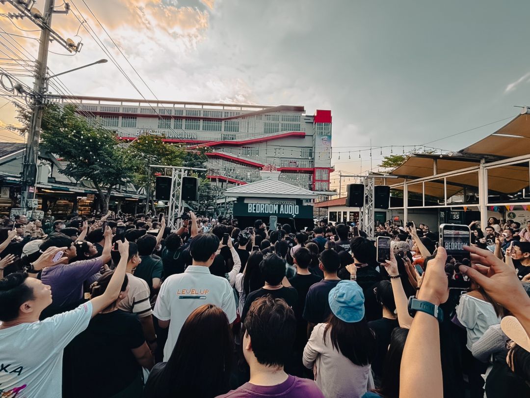 บรรยากาศช่วงสุดสัปดาห์ที่ผ่านมาอบอวลไปด้วยความอบอุ่นตั้งแต่วินาทีแรกที่เสียงดนตรีของ Bedroom Audio เริ่มต้น แฟนเพลงหลากหลายวัยรวมตัวกันแน่นพื้นที่ตลาดนัดจตุจักร ที่มารอส่งมอบความรัก ความคิดถึง และความผูกพันผ่านเพลงที่ทุกๆคนคุ้นเคย ตลอดทั้งโชว์ 45 นาทีกับเสียงร้องตามที่ดัง! พร้อมเป็นการร่วมฉลองความสำเร็จของเพลง “ภาวนา” ที่มียอดรับชมทะลุ 1 ล้านวิวบนยูทูปอย่างสวยงาม วงจึงนำเพลงนี้มาโชว์สด ๆ ต่อหน้าแฟนเพลงอย่างใกล้ชิด จัดได้ว่าเป็นทุกคำภาวนา ทุกความรู้สึก ส่งถึงกันตรงหน้ากันไปเลย และพิเศษยิ่งขึ้นกับเพลย์ลิสเพลงช้าสุดฮิตระดับ 100 ล้านวิว ที่ขนมาครบทุกอารมณ์ ไม่ว่าจะเป็น เพลงที่เธอไม่ฟัง, ใครคนนั้น, บอกรัก, กอดไม่ได้, รักมือสอง, ไม่บอกเธอ ,หม้อรวม แต่ละเพลงถูกถ่ายทอดอย่างเรียบง่าย จริงใจ และเต็มไปด้วยความรู้สึกที่แฟนเพลงคิดถึง ช่วงท้ายคอนเสิร์ตจบ Bedroom Audio ยังคงขอเก็บความประทับใจกับแฟนเพลงด้วยการแจกลายเซ็น-พูดคุยอย่างใกล้ชิดและเป็นกันเองสุดๆ กลายเป็นโมเมนต์พิเศษที่ทั้งศิลปินและผู้ชมต่างประทับใจไม่รู้ลืม