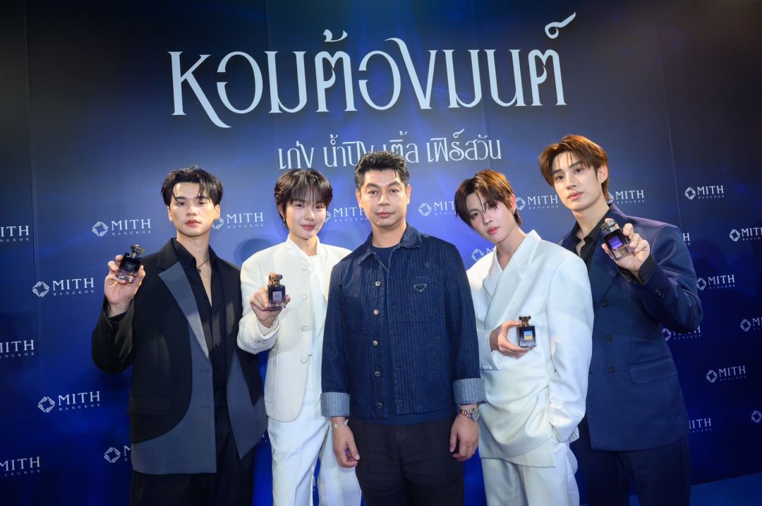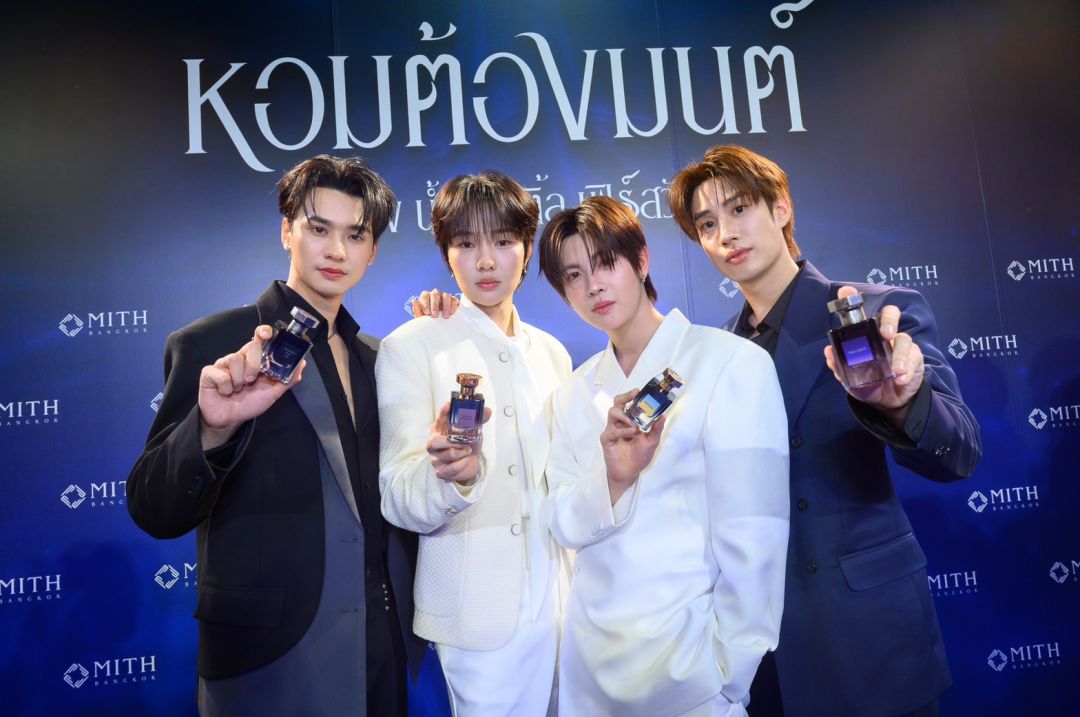 งานนี้นำโดย คุณพอ – จุติณัฏฐ์ ปิยวีรวงศ์ นักออกแบบและผู้ก่อตั้งแบรนด์น้ำหอม MITH กรี๊ดสนั่นกับการปรากฏตัวของ 4 พรีเซนเตอร์ใหม่ ที่ถ่ายทอดตัวตนผ่านน้ำหอม 4 กลิ่น 4 สไตล์ สะท้อนเอกลักษณ์และบุคลิกที่แตกต่างกันอย่างมีเสน่ห์ เก่ง หฤษฎ์ ภายใต้บุคลิกนิ่งขรึมดูนิ่งสงบ แต่ภายในกลับซ่อนความอ่อนโยน ใส่ใจ และเต็มเปี่ยมด้วยความรัก เหมาะกับกลิ่น “Mystery for Him” อันลึกลับ และน่าค้นหา ด้าน น้ำปิง นภัสกร ผู้ชายเรียบง่ายสบาย ๆ ไม่มีอะไรซับซ้อน แต่รอยยิ้มสามารถย้อมโลกที่มืดมนให้สว่างสดใส ทำให้นึกถึงกลิ่น “Silver Sparkle” ที่สดชื่น และเปล่งประกายโดดเด่น เติ้ล มติมันท์ หนุ่มเจ้าเสน่ห์ ที่ดึงดูดให้คนรอบข้างอยากเข้าใกล้เพื่อค้นหาความหมายที่ซ่อนไว้ กับกลิ่น “Twilight” เสน่ห์ในยามค่ำคืน ปิดท้ายกับ เฟิร์สวัน วรรณกร หนุ่มขี้เล่น จริงใจ ใสซื่อ ตรงกับกลิ่น “Horizon” หรือเส้นขอบฟ้า กลิ่นที่เปิดด้วยส้มแมนดารินสดชื่น กลิ่นน้ำทะเลสีฟ้าครามปลอดโปร่ง ทำให้รู้สึกผ่อนคลาย