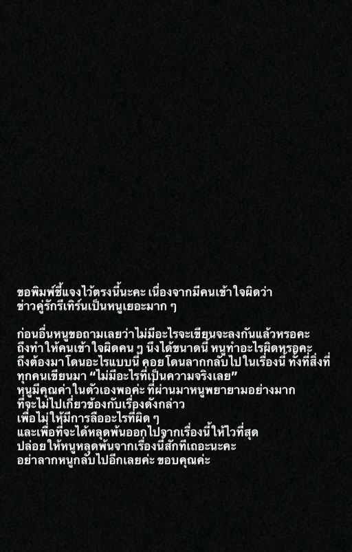 เพื่อไม่ให้มีการลืออะไรที่ผิดๆ และเพื่อที่จะได้หลุดพ้นออกไปจากเรื่องนี้ให้ไวที่สุด ปล่อยให้หนูหลุดพ้นจากเรื่องนี้สักทีเถอะนะคะ อย่าลากหนูกลับไปอีกเลยค่ะ ขอบคุณค่ะ”