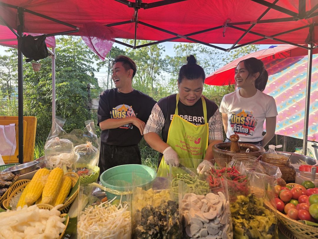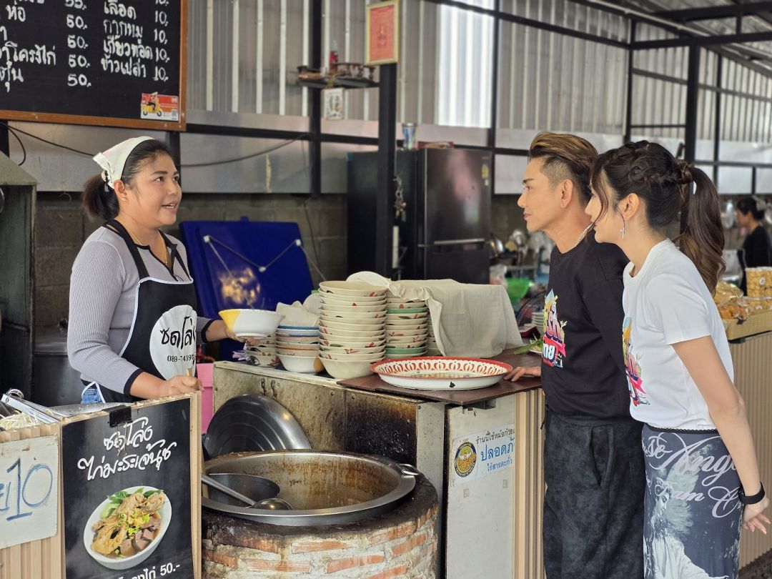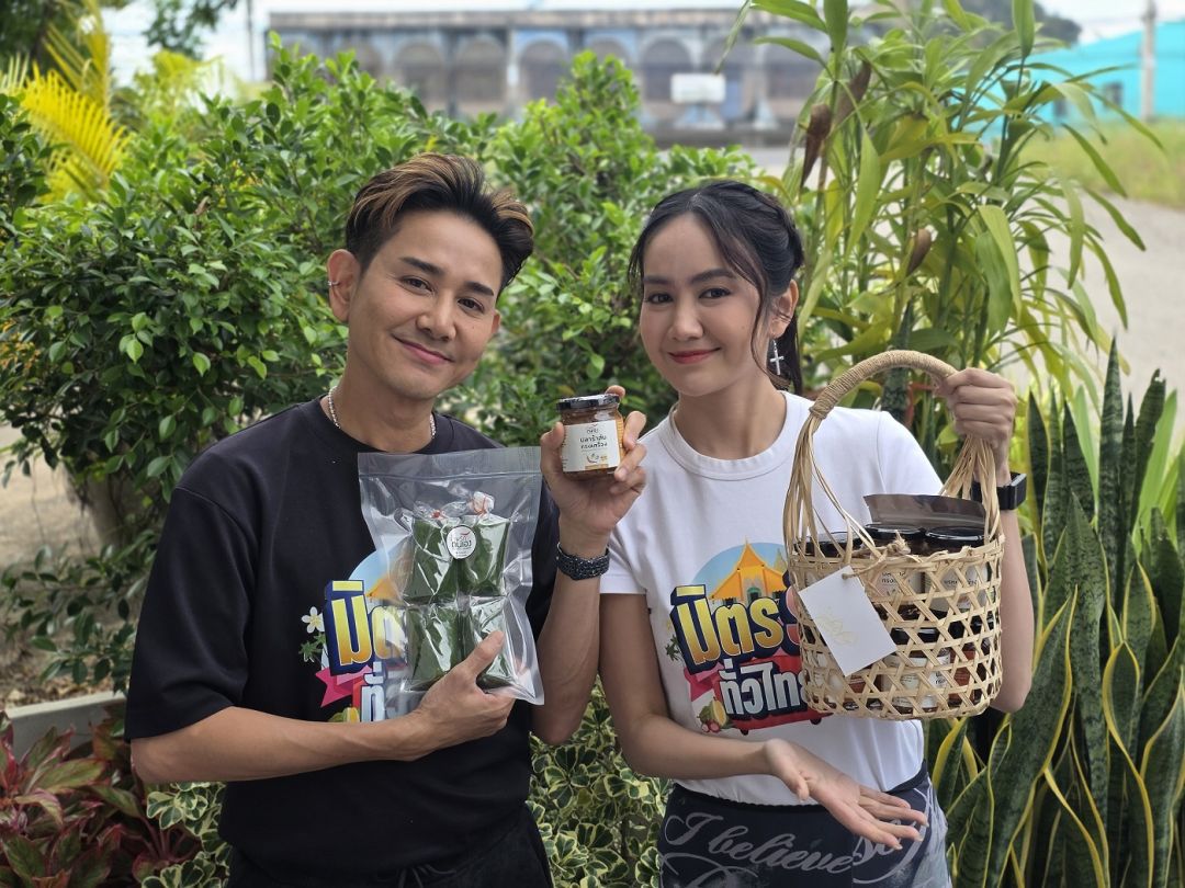 จากนั้น เอ-แป้ง มุ่งหน้าสู่ตลาดทางรถไฟลำนารายณ์ เพื่อตามหาของดีไฮไลต์ประจำพื้นที่ “น้ำพริกตนเอง” โดยมี “ตนเอง-ฐาวดี จงวัฒนา” ประธานวิสาหกิจชุมชนกลุ่มพัฒนาและแปรรูปอาหารเพื่อสุขภาพ อ.ชัยบาดาล จ.ลพบุรี คนรุ่นใหม่ไฟแรง ให้การต้อนรับอย่างอบอุ่น พร้อมพาแนะนำสารพัดน้ำพริกรสจัดจ้าน ทั้งน้ำพริกปลาร้าสับทรงเครื่อง น้ำพริกตาแดง น้ำพริกเผาหมู และน้ำพริกปลาย่าง ที่สืบทอดสูตรดั้งเดิมจากรุ่นแม่ ก่อนนำมาพัฒนาบรรจุภัณฑ์และต่อยอดสู่ตลาดออนไลน์งานนี้สองพ่อลูกไม่พลาดลงครัว เคียงข้างแม่ ๆ ชาวชัยบาดาล ลุยทำน้ำพริกปลาร้าสับทรงเครื่องตั้งแต่ขั้นตอนแรกจนเสร็จ พร้อมล้อมวงชิมเมนูแซ่บแบบบ้าน ๆ อย่างข้าวผัดน้ำพริก และเมี่ยงปลาร้าสับใส่หมูสับ สะท้อนเสน่ห์อาหารพื้นถิ่นที่ทั้งอร่อยและเปี่ยมด้วยเรื่องราวปิดท้ายด้วยการเปิดพื้นที่ช่วยขายสินค้าชุมชน ทั้งน้ำพริกตนเอง และผลิตภัณฑ์จากกลุ่มวิสาหกิจชุมชนในอำเภอชัยบาดาล ให้แฟนรายการได้ร่วมอุดหนุน ซึ่งสามารถสั่งซื้อสินค้าได้ทางเว็บไซต์ shop.bugaboo.tv