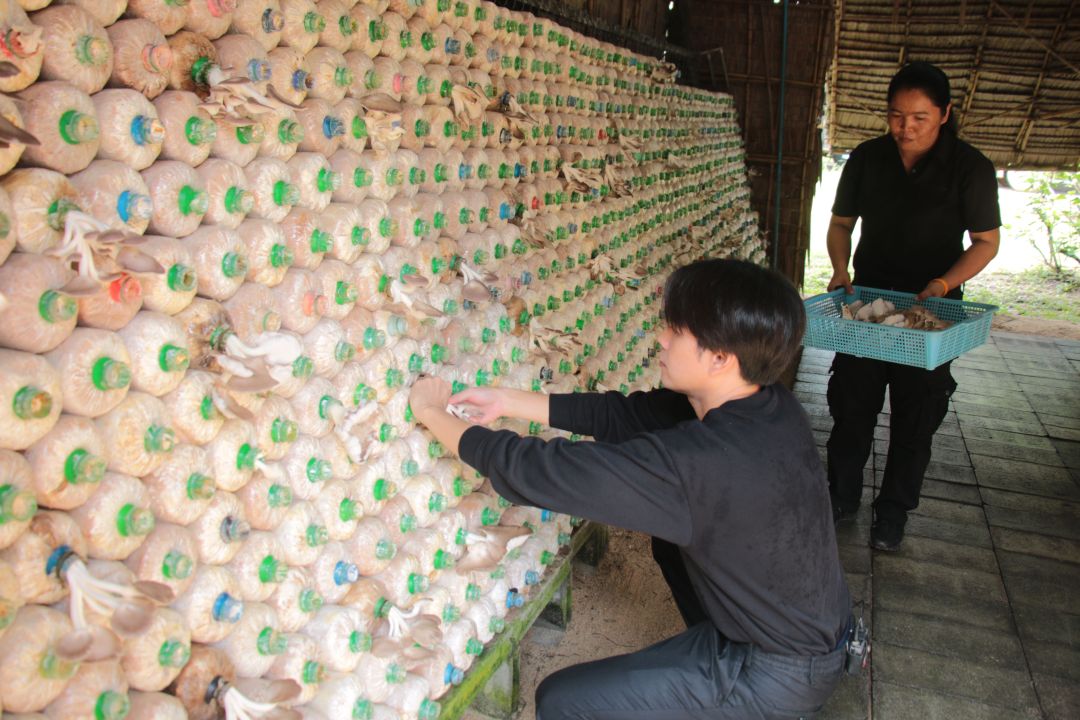 พื้นที่ 721 ไร่ เป็นโครงการฟาร์มตัวอย่างตามพระราชดำริ ลำดับที่ 46 ของประเทศ เพื่อให้เกษตรกรนำองค์ความรู้ไปปรับใช้กับพื้นที่การเกษตรของตนเอง ช่วยลดต้นทุน เพิ่มผลผลิต และยกระดับคุณภาพชีวิตของเกษตรกรและประชาชน เริ่มจากนั่งรถรางเที่ยวชมรอบฟาร์ม ผ่านพลับพลาที่ประทับ และอาคารสำคัญต่างๆ ได้เห็นทั้งแปลงปลูกข้าว แปลงไม้ผล ไม้ประดับ พืชไร่ และสวนป่า โดยเฉพาะแปลงเกษตรสาธิตนอกจากแปลงสาธิตการปลูกผัก ที่นี่ยังมีโรงเพาะเห็ดขนาดใหญ่หลากหลายชนิดให้ได้เรียนรู้ในทุกขั้นตอนอีกด้วยจากนั้นเปลี่ยนบรรยากาศไปฟาร์มปศุสัตว์ ทำกิจกรรมสนุกๆ อย่างดูการเลี้ยงแพะ ให้อาหารแพะ และหมูจินหัว ซึ่งเป็นสายพันธุ์นำเข้าจากต่างประเทศภายในฟาร์มตัวอย่างสมเด็จพระนางเจ้าสิริกิติ์ พระบรมราชินีนาถ พระบรมราชชนนีพันปีหลวง บ้านยางกลาง ยังมีศูนย์ศิลปาชีพสีบัวทอง ซึ่งเป็นอีกหนึ่งพื้นที่สร้างงานหัตถศิลป์อันประณีตแบบครบวงจร ถ่ายทอดภูมิปัญญาไทยจากรุ่นสู่รุ่น เปิดโอกาสให้นักท่องเที่ยวและประชาชนทั่วไปได้เข้าชมและศึกษางานด้านเซรามิค การทอผ้ายกราชสำนักไทยโบราณ รวมไปจนถึงการทำหัวโขนจากกระดาษข่อย ซึ่งมีเพียงแห่งเดียวในประเทศไทยและงานปักผ้าสำหรับโขนพระราชทาน