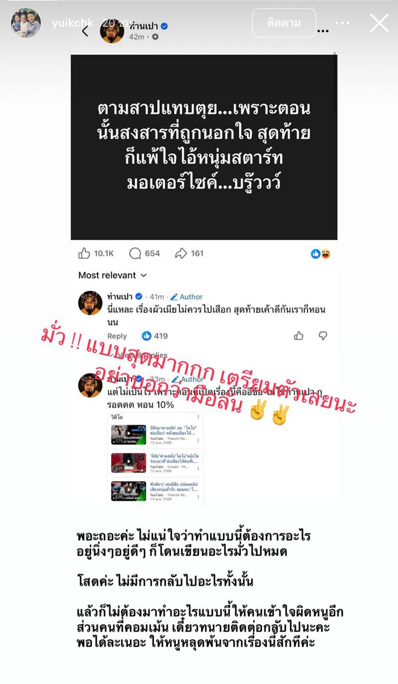 ทางคุณแม่ยุ้ย คุณแม่ของนางเอกสาวชื่อดัง ก็เดือดไม่แพ้ลูกสาว ได้ออกมาได้รีโพสต์สตอรี่ของณิชา ฟาดเดือดว่า " มั่ว !! แบบสุดมากกก เตรียมตัวเลยนะ อย่าบอกว่ามือลั่น" รวมทั้ง "บางทีก็เหนื่อยหน่ายนะ"