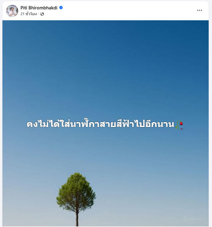 ล่าสุด ต๊อด ปิติ ได้โพสต์ข้อความสั้นๆ แต่ทำเอาแฟนคลับอมยิ้มผ่านทางเฟซบุ๊ก โดยระบุว่า "คงไม่ได้ใส่นาฬิกาสายสีฟ้าไปอีกนาน" ก่อนจะโพสต์ภาพอวดนาฬิกาเรือนใหม่ที่ดูเรียบง่ายกว่าเดิมอย่าง Casio พร้อมทิ้งท้ายข้อความว่า "เรื่องความปลอดภัยที่ต้องกลับมาคิดแล้วละครับ"
