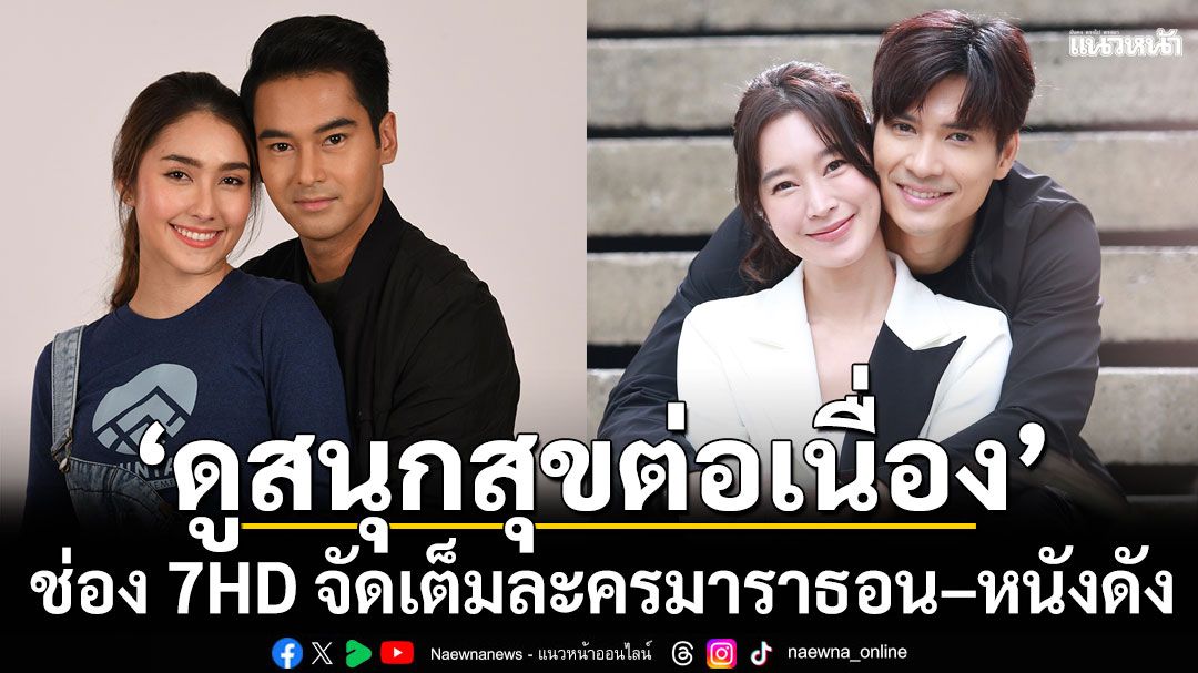 ต่อด้วยละครเรื่อง “ในรอยทราย” นำแสดงโดย ไมค์-ภัทรเดช สงวนความดี ประกบคู่ 2 นางเอก ฐิสา-วริฏฐิสา ลิ้มธรรมมหิศร และ สกาย มาเรีย จะมาเสิร์ฟความสนุกแบบมาราธอน 7 วันตลอดสัปดาห์ ในวันเสาร์ อาทิตย์ และ วันจันทร์-ศุกร์ เวลา 20.30 น. ตั้งแต่วันนี้ -ศุกร์ที่ 2 มกราคม 2569 นอกจากนี้ ตั้งแต่วันจันทร์ที่ 29 ธันวาคม-พฤหัสบดีที่ 1 มกราคม 2569 ช่วงเวลา 23.00 น. และ 00.50 น. พบกับภาพยนตร์เรื่องดังสนุกครบทุกรสชาติ อาทิ สุดเขตสเลดเป็ด, ผู้บ่าวไทบ้าน อีสานจ๊วด, แดง พระโขนง, โอ้ ! มายโกสต์ คุณผีช่วย, มอนโด รัก | โพสต์ | ลบ | ลืม ฯลฯ และในวันศุกร์ที่ 2 มกราคม 2569 เวลา 22.30 น. ติดตามชมภาพยนตร์อิงประวัติศาสตร์ฟอร์มใหญ่เรื่อง พันท้ายนรสิงห์ แบบ 3 ชั่วโมงเต็มอิ่มไฮไลต์สำคัญในคืนข้ามปี วันพุธที่ 31 ธันวาคมนี้ ตั้งแต่เวลา 22.20 น. เป็นต้นไป ช่อง 7HD มอบของขวัญสุดพิเศษให้ผู้ชมทั่วประเทศ กับรายการ “7HD ส่งสุข ส่งใจ ทั่วไทยด้วยธรรม” เพื่อส่งกำลังใจให้คนไทยก้าวข้ามปีใหม่ไปด้วยความสุข นอกจากเก็บบรรยากาศงานเคานต์ดาวน์จากสถานที่ต่าง ๆ ทั้งในประเทศและต่างประเทศแล้ว ยังถ่ายทอดบรรยากาศกิจกรรม สวดมนต์ข้ามปี เสริมสิริมงคลทั่วไทย ถวายพระราชกุศล ส่งท้ายปีเก่า ต้อนรับศักราชใหม่ ๒๕๖๙ โดยกรมการศาสนา สดจากวัดสระเกศราชวรมหาวิหาร, วัดอรุณราชวรารามราชวรมหาวิหาร และ วัดพระเชตุพนวิมลมังคลาราม ราชวรมหาวิหาร รายงานโดยทีมผู้ประกาศข่าวคุณภาพ อาทิ จีรนันท์ เขตพงศ์, เกณฑ์สิทธิ์ กันธจันทร์, ณิชารีย์ นา ื่อง ้อนรับปีใหม่วายพระราชกุพัดทอง, ปิ่นปินัทธ์ ฐากุลวีรนันท์, เกียรติภูมิ บันลือชัยฤทธิ์