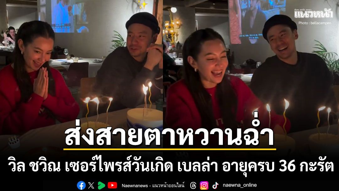28 ธันวาคม 2568 เรียกได้ว่าเป็นโมเมนต์หวานที่สุดแสนจะเรียบง่าย สำหรับนางเอกสาวชื่อดัง เบลล่า ราณี แคมเปน กับ แฟนหนุ่มทายาทหมื่นล้าน วิล ชวิณ เจียรวนนท์ ที่ล่าสุดในปาร์ตี้ฉลองวันเกิดย้อนหลังวันเกิดของสาวเบลล่าเมื่อวันที่ 24 ธันวาคมที่ผ่านมา โดยปีนี้สาวเบลล่า มีอายุครบ 36 ปี เรียกว่าปีนี้มีโมเมนต์ในบรรยากาศการเซอร์ไพรส์วันเกิดย้อนหลังของเบลล่า กับ วิล ชวิณ พร้อมกับเพื่อนๆ ที่นั่งร่วมโต๊ะดินเนอร์