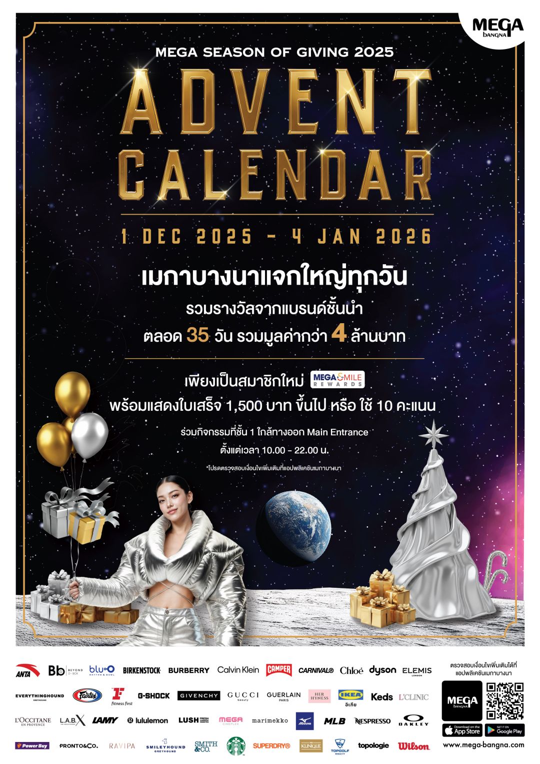 นอกจากมหกรรมคอนเสิร์ต MEGA COUNTDOWN 2026 เมกาบางนายังมีอีกหลากหลายกิจกรรมและสิทธิพิเศษสำหรับสมาชิกเมกาสไมล์ รีวอร์ดส มอบสิทธิพิเศษส่งท้ายปี แจกของรางวัลใหญ่ทุกวันจากแบรนด์ชั้นนำ มอบความสุขให้นักช้อปทุกคน กับแคมเปญ “ ADVENT CALENDAR” รวมมูลค่ากว่า 4 ล้านบาท รวมไปถึงแลนด์มาร์กแห่งการเฉลิมฉลองสุดพิเศษ “THE SPACE SANTA” ที่ถ่ายทอดแนวคิด “THE GIFT FROM GALAXY” เรื่องราวของซานตาคลอสผู้เดินทางข้ามจักรวาลเพื่อตามหาของขวัญ เพื่อมามอบรอยยิ้มพร้อมประสบการณ์สุดมหัศจรรย์ให้กับทุกคนที่เมกาบางนา ผ่านงานออกแบบสุดล้ำที่ผสานจินตนาการของโลกอวกาศเข้ากับความอบอุ่นของเทศกาลคริสต์มาสอย่างลงตัว ทั้งต้นคริสต์มาสขนาดยักษ์ ประดับไฟและของขวัญจากกาแล็กซี ยานอวกาศสุดล้ำจำลองการเดินทางสู่จักรวาล และอุโมงค์แสง LED บนพื้นที่กว่า 1,200 ตารางเมตร ชวนให้ทุกคนในครอบครัวมาร่วมถ่ายภาพส่งต่อความประทับใจกันตลอดปลายปีนี้ บริเวณโซนเมน เอนทรานซ์ และโซนฟู้ดวอล์ค พลาซ่า ตั้งแต่วันนี้ถึงวันที่ 4 ม.ค. 69 ให้ได้เติมเต็มความสุขต้อนรับปีใหม่ไปด้วยกัน