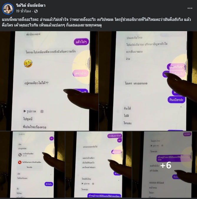 โดยได๋ได๋ระบุข้อความว่า “แบบนี้หมายถึงอะไรคะ อ่านแล้วไม่เข้าใจ ว่าหมายถึงอะไร งงไปหมด ใครรู้ช่วยอธิบายทีได้ไหมคะว่ามันคือยังไง แล้วคือใคร เค้าคุยอะไรกัน เห็นแล้วแปลก ๆ ก็เลยลองถามทุกคนดู”