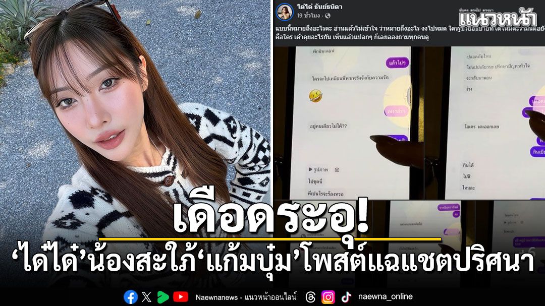6 มกราคม 2569 กลายเป็นประเด็นที่ถูกจับตามองในโลกออนไลน์ เมื่อวันที่ 5 มกราคม 2569 หลังจาก "ได๋ได๋ นฤมาศ" ภรรยาคนสวยของ "บิว วรพนธ์" น้องชายของนักแสดงสาวชื่อดัง "แก้มบุ๋ม ปรียาดา" ได้ออกมาโพสต์ข้อความพร้อมภาพแชตปริศนาลงบนโซเชียลมีเดีย จนทำให้ชาวเน็ตต่างพากันตั้งคำถามและวิพากษ์วิจารณ์กันอย่างกว้างขวาง