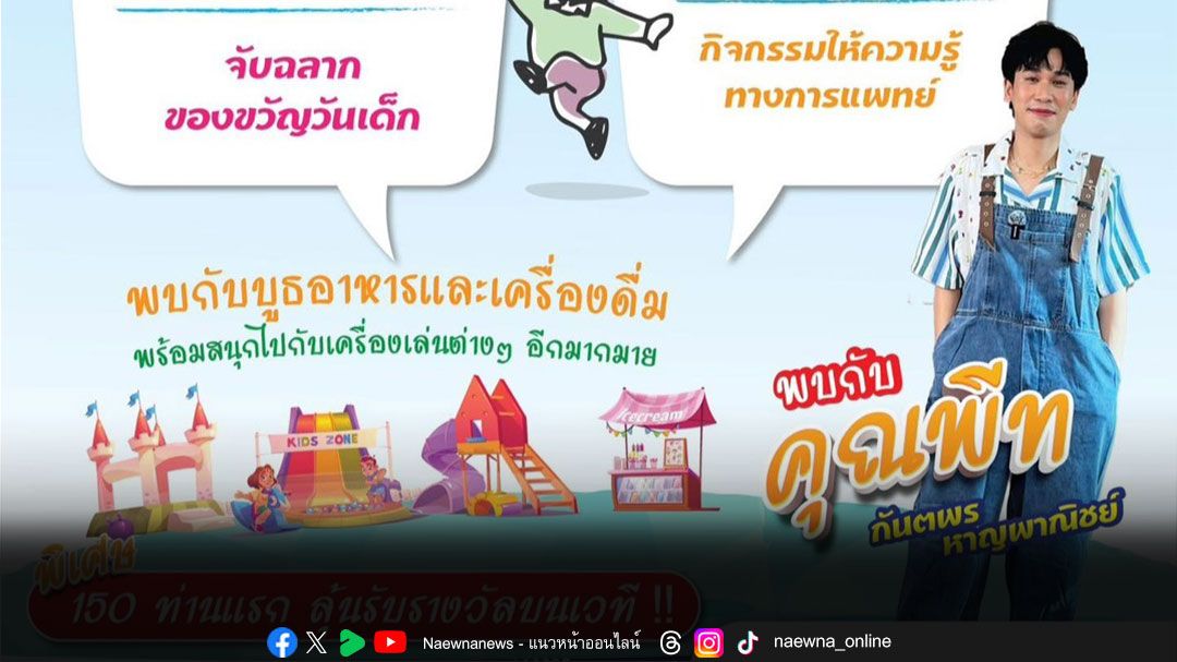 โรงพยาบาลเกษมราษฎร์ รามคำแหง ขอเชิญน้องๆ เข้าร่วมงาน “วันเด็กแห่งชาติ 2569” ภายในงานพบกับ “คุณพีท กันตพร หาญพาณิชย์” พร้อมสนุกไปกับกิจกรรมและสาระความรู้ อาทิ เครื่องเล่นต่างๆ เวทีกิจกรรมที่เปิดโอกาสให้เด็กได้แสดงความสามารถ กิจกรรมสันทนาการ จับฉลากของขวัญวันเด็ก กิจกรรมเสริมสร้างพัฒนาการสำหรับเด็ก กิจกรรมให้ความรู้ทางการแพทย์ ตรวจสุขภาพฟันและอิ่มอร่อยไปกับอาหารและเครื่องดื่มแบบจัดเต็ม ฟรีตลอดงาน