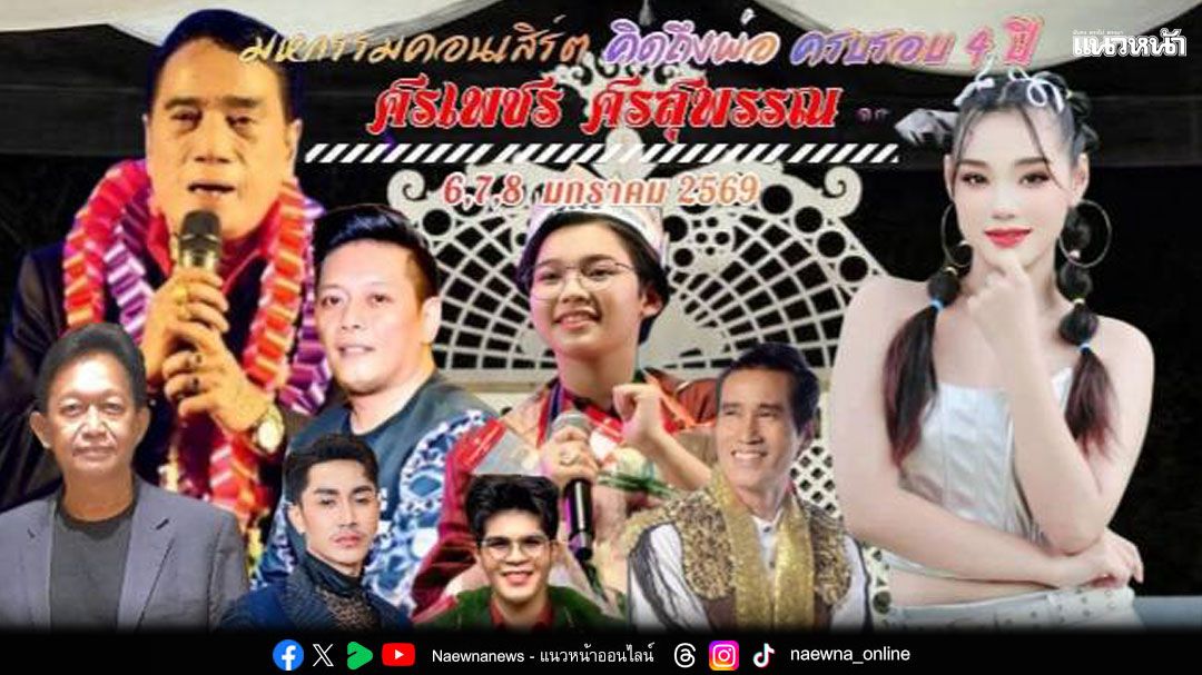 ในวันพุธที่7มกรา มาพบกับ น้องอาย - นภัชชา เด็กในคาถาของ ป๋า กฤษดา ขาใหญ่ค่ายพุ่มฤทธิ์ เรคคอร์ค ที่พกพาความสนุกสนานมากับผลงานซิงเกิ้ลเพลงใหม่ “อย่าชักช้า” พร้อมทั้ง แดนซ์เซอร์ชุดใหญ่ห้ามพลาด !! เรามีนัดกันในงาน มหกรรม คอนเสิร์ต คิดถึงพ่อ ครบรอบ 4 ปี หนุ่มนาเสียงเด็ด ศรเพชร ศรสุพรรณ เป็นอันว่า งานเริ่มตั้งแต่วันนี้..วันอังคารที่6 ถึง วันพฤหัสที่8 มกราคม2569 ณ สนามโรงเรียนวัดกลางบ้านดอน อ.อู่ทอง จ.สุพรรณบุรี สุดท้าย !! ท้ายสุด สำหรับ ท่านเจ้าภาพที่ต้องการติดต่อการแสดงคอนเสิร์ตของ อาย นภัชชา โทรมาจองคิวหรือปรึกษาและสอบถามรายละเอียดได้ที่ 063-296-4656 หรือถ้าทันใจโทรไปเบอร์ใหม่ 082-393-3568 เสี่ยธงชัย -กฤษดา พุ่มฤทธิ์ คิดราคาพิเศษ นะจะบอก ไห่ !!! สวัสดี วีคหน้ามาว่ากันต่อหมึก มายา ประธานชมรมเพื่อนสื่อมวลชนสร้างสรรค์ประเทศไทย