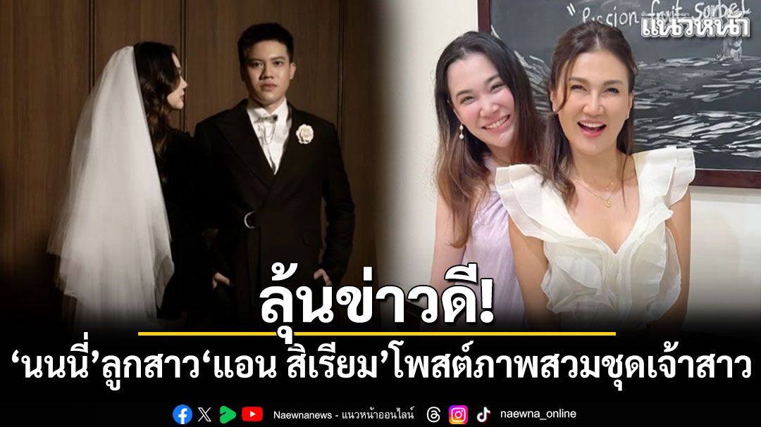9 มกราคม 2569 ทำเอาโซเชียลฮือฮาและร่วมลุ้นข่าวดีกันถ้วนหน้า เมื่อล่าสุด "นนนี่ นนลนีย์" ลูกสาวสุดที่รักของนักแสดงรุ่นใหญ่ "แอน สิเรียม" ออกมาโพสต์ภาพเซอร์ไพรส์ในลุคเจ้าสาว สวยออร่าเปล่งประกาย พร้อมหนุ่มปริศนาสวมสูทสุดเนี้ยบยืนเคียงข้าง คล้ายภาพพรีเวดดิ้ง จนหลายคนอดสงสัยไม่ได้ว่าเจ้าตัวกำลังจะมีข่าวดีเรื่องวิวาห์หรือไม่