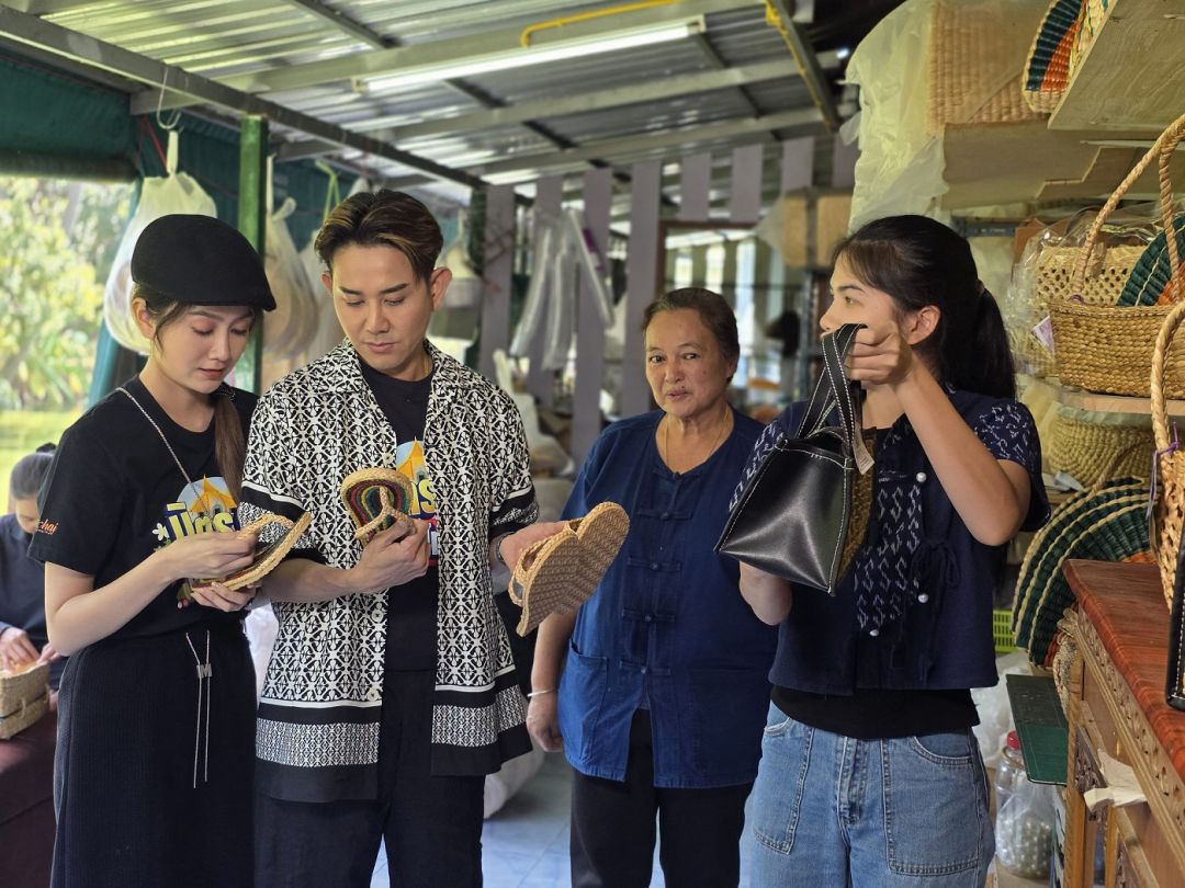 เริ่มกันที่ วิสาหกิจชุมชนกลุ่มแม่บ้านเกษตรกรบึงลาดสวาย งานนี้พ่อเอ-ลูกแป้งได้รับการต้อนรับอย่างอบอุ่นจากแม่ ๆ ที่แต่งตัวชุดพื้นถิ่นชาวมอญมาต้อนรับ ก่อนที่จะนำของดีอย่าง ขนมเปี๊ยะอบเทียนไส้ไข่เค็ม (สูตรชาววัง) มาให้ชิม แล้วพาไปดูขั้นตอนการทำขนมเปี๊ยะทุกขั้นตอน ตั้งแต่ดูส่วนผสมทั้งหมด กระทั่งเริ่มทำตั้งแต่ต้นจนจบแบบไม่หวงสูตร ต่อด้วยของดีจากวิสาหกิจชุมชนที่สอง นั่นก็คือ วิสาหกิจชุมชนจักสานผักตบชวาบ้านคลองนกกระทุง ที่นำผักตบชวามาแปรรูปเป็นสินค้าของชุมชนที่มีทั้ง กระเป๋า, ตะกร้า, กระเช้า รวมไปถึงรองเท้า ในรูปแบบที่ทันสมัย เรียกว่าวันนี้พ่อเอ-ลูกแป้ง ได้ลองทำตั้งแต่การไปตัดต้นผักตบสด ๆ แล้วนำมาตาก จนถึงขั้นตอนการทำตะกร้าเลยทีเดียว ปิดท้ายด้วยการนำสินค้าของทั้ง 2 วิสาหกิจชุมชนมาช่วยกันขาย เพื่อให้แฟน ๆ ทางบ้านได้ซื้อหากัน ส่วนใครที่สนใจของวิสาหกิจชุมชนไหนที่ รายการ มิตรรัก ทั่วไทย เดินทางไป อยากอุดหนุน สนับสนุน สามารถสั่งซื้อสินค้าได้ที่เว็บไซต์ shop.bugaboo.tv