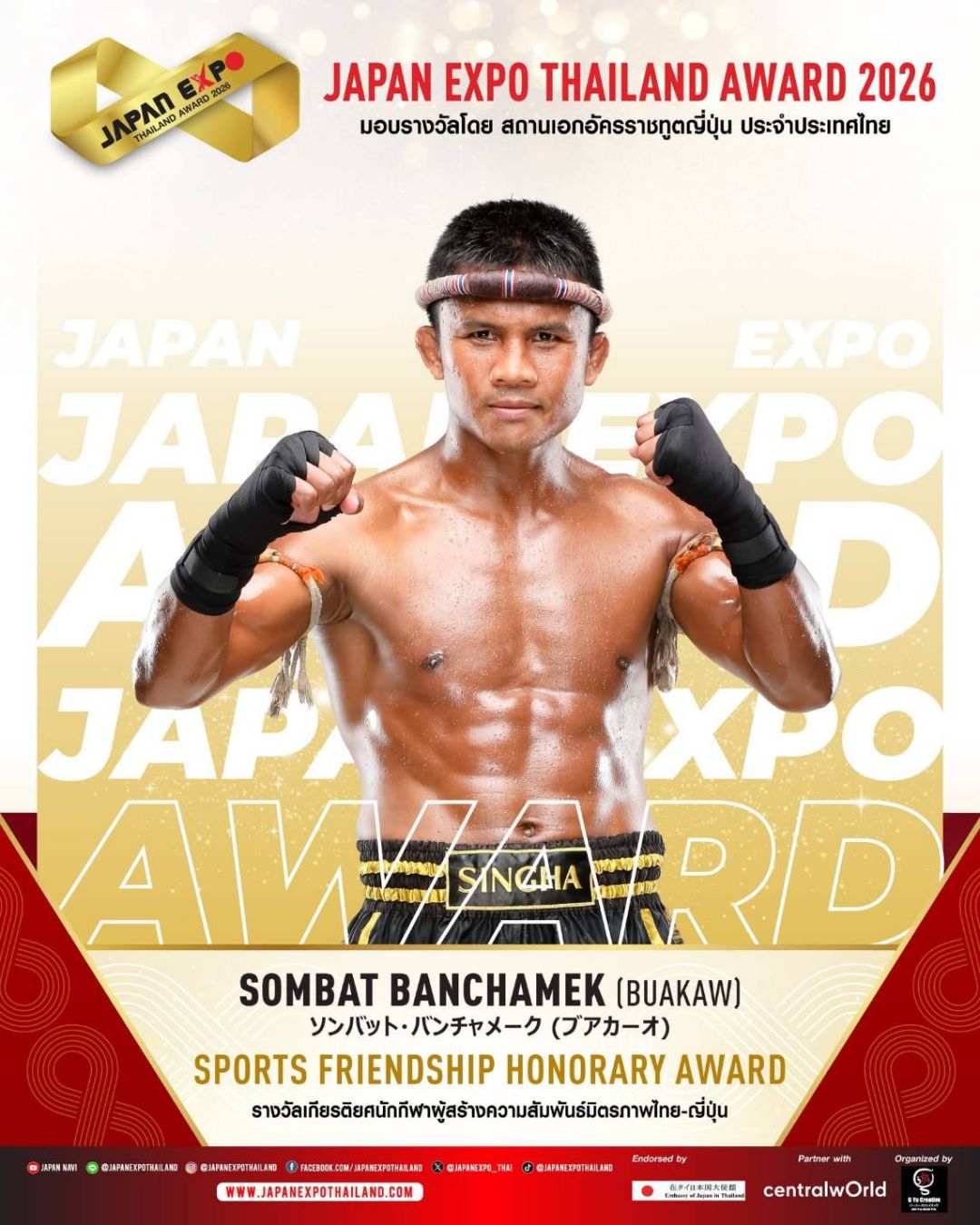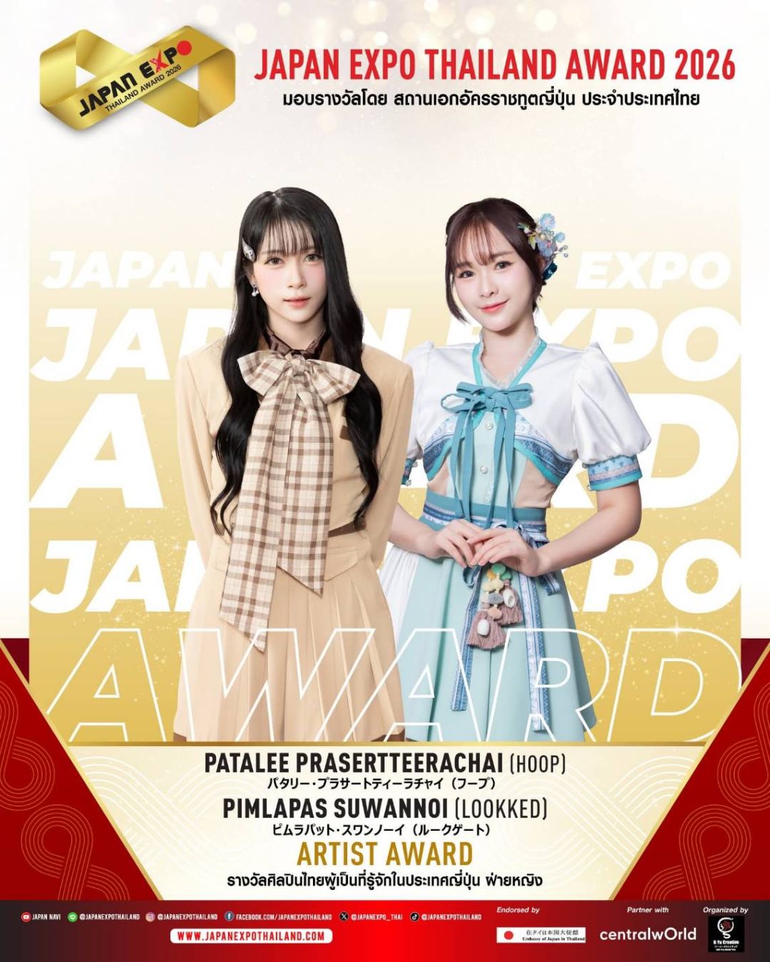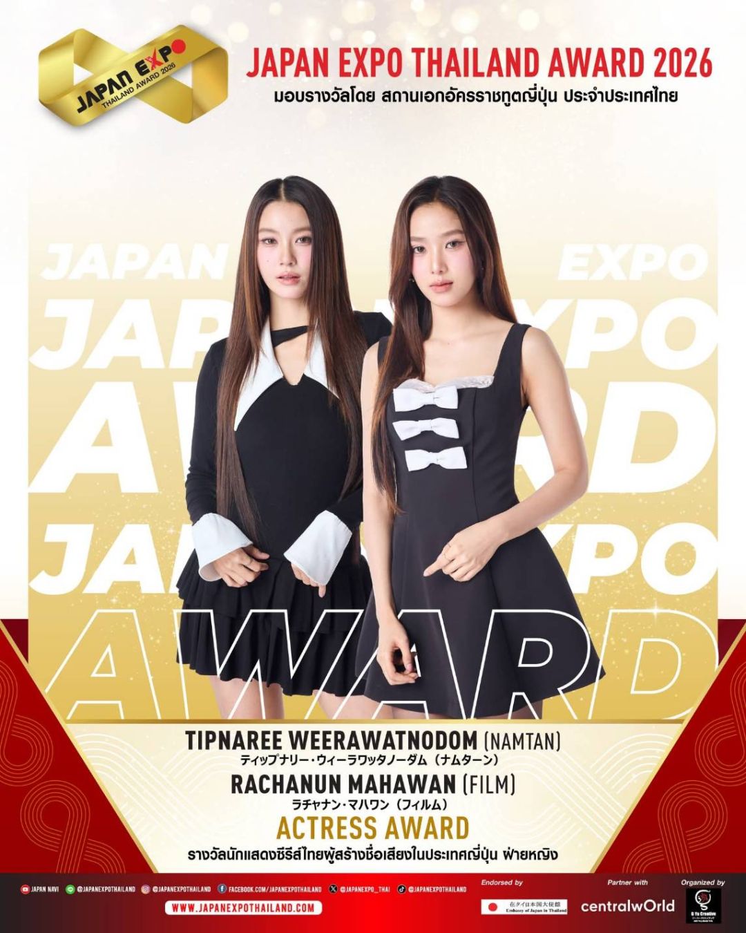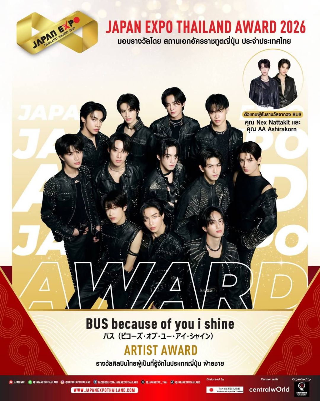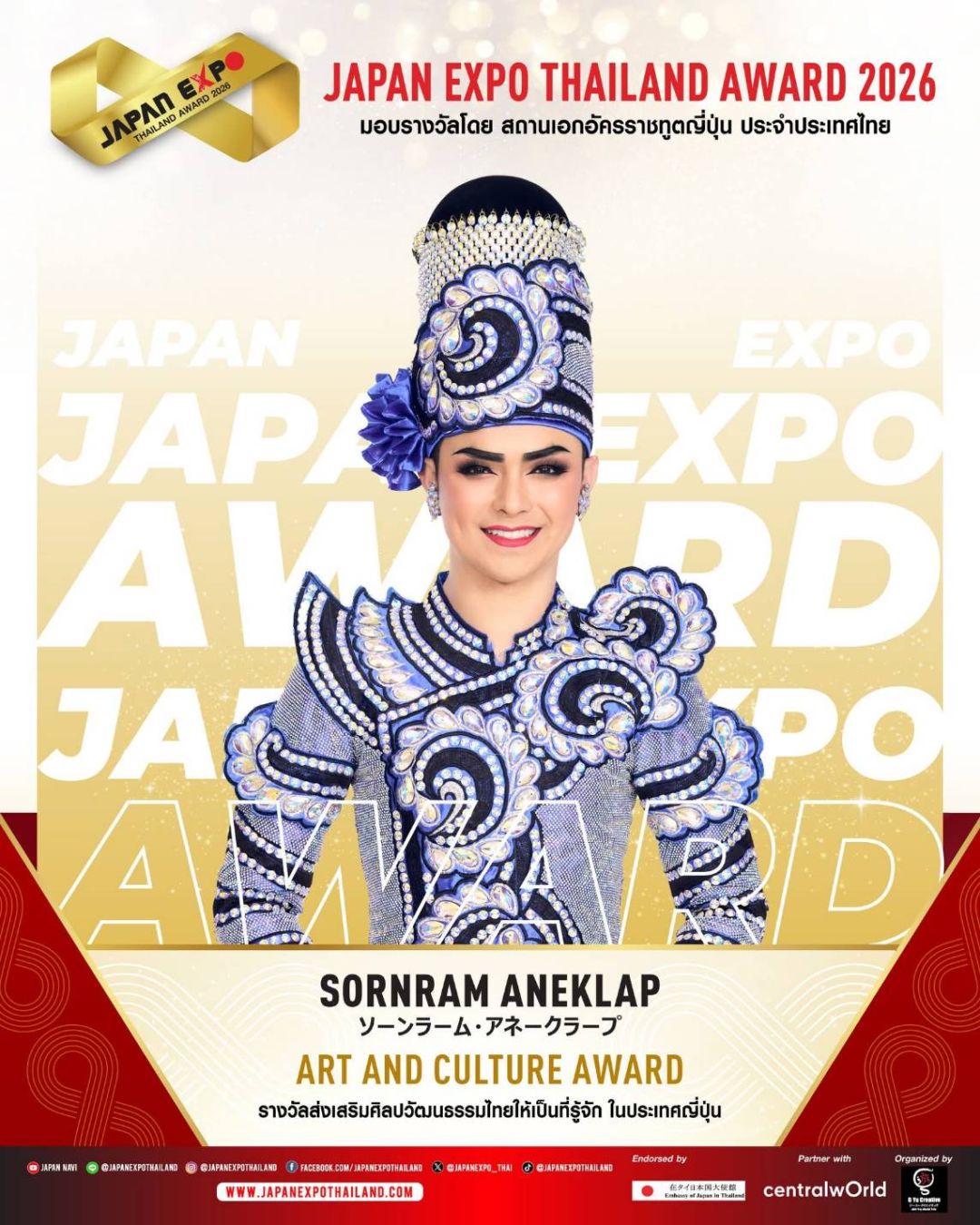 JAPAN EXPO THAILAND 2026 ครั้งที่ 11 ในธีม “Japan Thai United as One – ญี่ปุ่นไทยรวมใจเป็นหนึ่งเดียว” เราจะสื่อรวมเป็นน้ำหนึ่งใจเดียวกันระหว่างไทยกับญี่ปุ่นที่สานสัมพันธ์กันมาอย่างยาวนาน และตลอดไปนอกจากจะครบเครื่องเรื่องญี่ปุ่นแล้ว JAPAN EXPO THAILAND 2026 ครั้งที่ 11 ยังเฉลิมฉลองด้วยการจัดงานมอบรางวัลสุดยิ่งใหญ่แห่งปี JAPAN EXPO AWARDS2026 หนึ่งเดียวในประเทศไทย!!! ที่ได้การตอบรับอย่างสูงสุดจากคนบันเทิง และผู้อยู่เบื้องหลังความสำเร็จ รวมถึงการสานความสัมพันธ์อันดีระหว่างประเทศไทยและประเทศญี่ปุ่นขอแสดงความยินดีกับ KOJI MUKAI (โคจิ มุไก) From Snow Man ได้รับรางวัลเกียรติยศ JAPAN EXPO THAILAND AWARD2026 ในสาขา THAI JAPAN RELATIONSHIP AWARD รางวัลเกียรติยศศิลปินผู้สานสัมพันธ์ระหว่างญี่ปุ่น-ไทย และขอแสดงความยินดีกับศิลปิน นักแสดง และบุคคลในวงการบันเทิงไทยที่ได้รับรางวัล JAPAN EXPO AWARDS2026 ที่ได้รับการพิจารณาจากคณะกรรมการผู้ทรงคุณวุฒิทั้งในประเทศไทยและประเทศญี่ปุ่น มอบรางวัลโดย สถานเอกอัครราชทูตญี่ปุ่น สำหรับบุคคลในแวดวงบันเทิงที่ส่งเสริมความสัมพันธ์ระหว่างไทยกับญี่ปุ่น โดยในปีนี้มีผู้ได้รับรางวัลต่างๆ ดังนี้