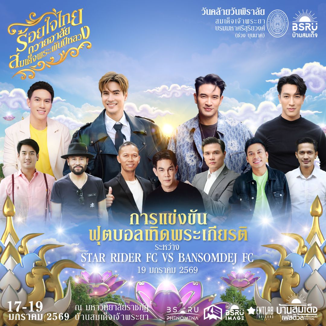 อีกหนึ่งไฮไลต์ที่แฟน ๆ ห้ามพลาด คือ การแข่งขันฟุตบอลเทิดพระเกียรติ ระหว่างทีมดารา STAR RIDER FC และ BANSOMDEJ FC ที่จะจัดขึ้นในวันจันทร์ที่ 19 มกราคม 2569 ณ สนามฟุตบอล Bansomdej Stadium งานนี้รวมทั้งนักแสดงและนักกีฬาชื่อดัง อาทิ ลีซอ ธีรเทพ, สมจิตร จงจอหอ, กอล์ฟ อนุวัฒน์, แจ๊บ เพ็ญเพชร, กิก ดนัย, คิง ก่อนบ่าย และเหล่าดาราขวัญใจแฟน ๆ มาโชว์ลีลาในสนามแบบใกล้ชิด