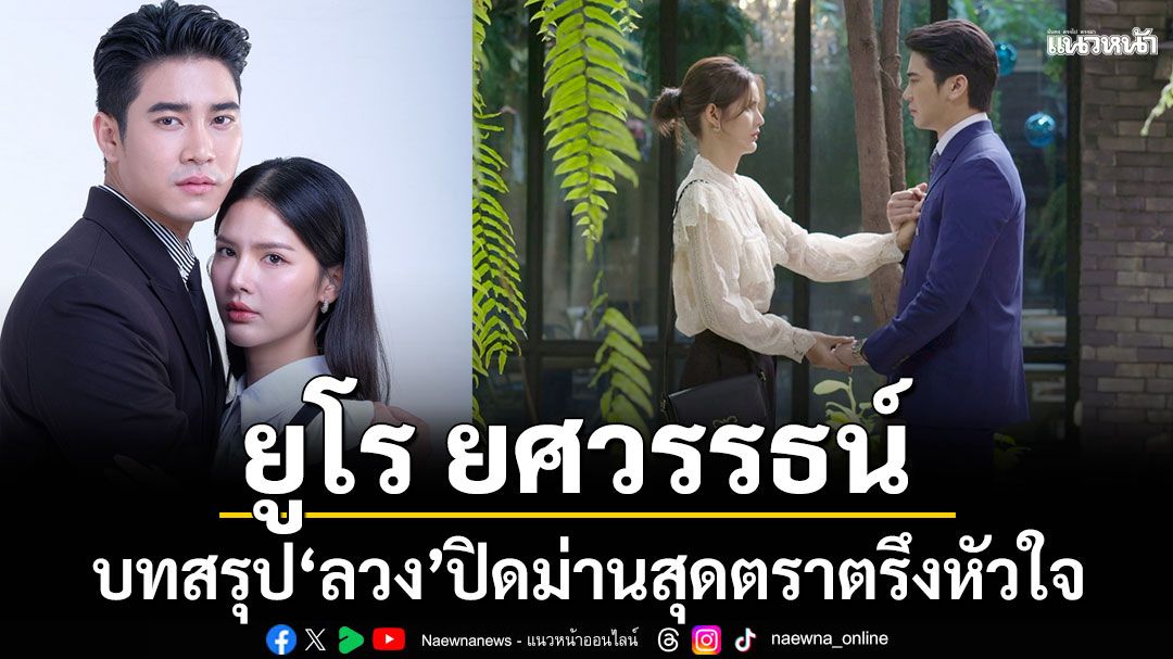 เดินทางมาถึงบทสรุปอย่างสมบูรณ์แล้ว สำหรับละครดราม่าเข้มข้นเรื่อง ลวง จากค่าย มงคลดี โปรดักชั่น นำแสดงโดย ยูโร ยศวรรธน์ ประกบคู่ กานต์-ณัฐชา รัตน์ชยางคานนท์ ที่ได้รับกระแสตอบรับอย่างอบอุ่นตั้งแต่ตอนแรก จนถึงตอนจบ หลังละครลาจอ พระเอกหนุ่ม ยูโร ยศวรรธน์ ออกมาเปิดใจขอบคุณแฟนละครทุกคนที่ติดตามและให้การสนับสนุนผลงานมาโดยตลอด พร้อมเผยความรู้สึกที่ได้เป็นส่วนหนึ่งของละครเรื่องนี้