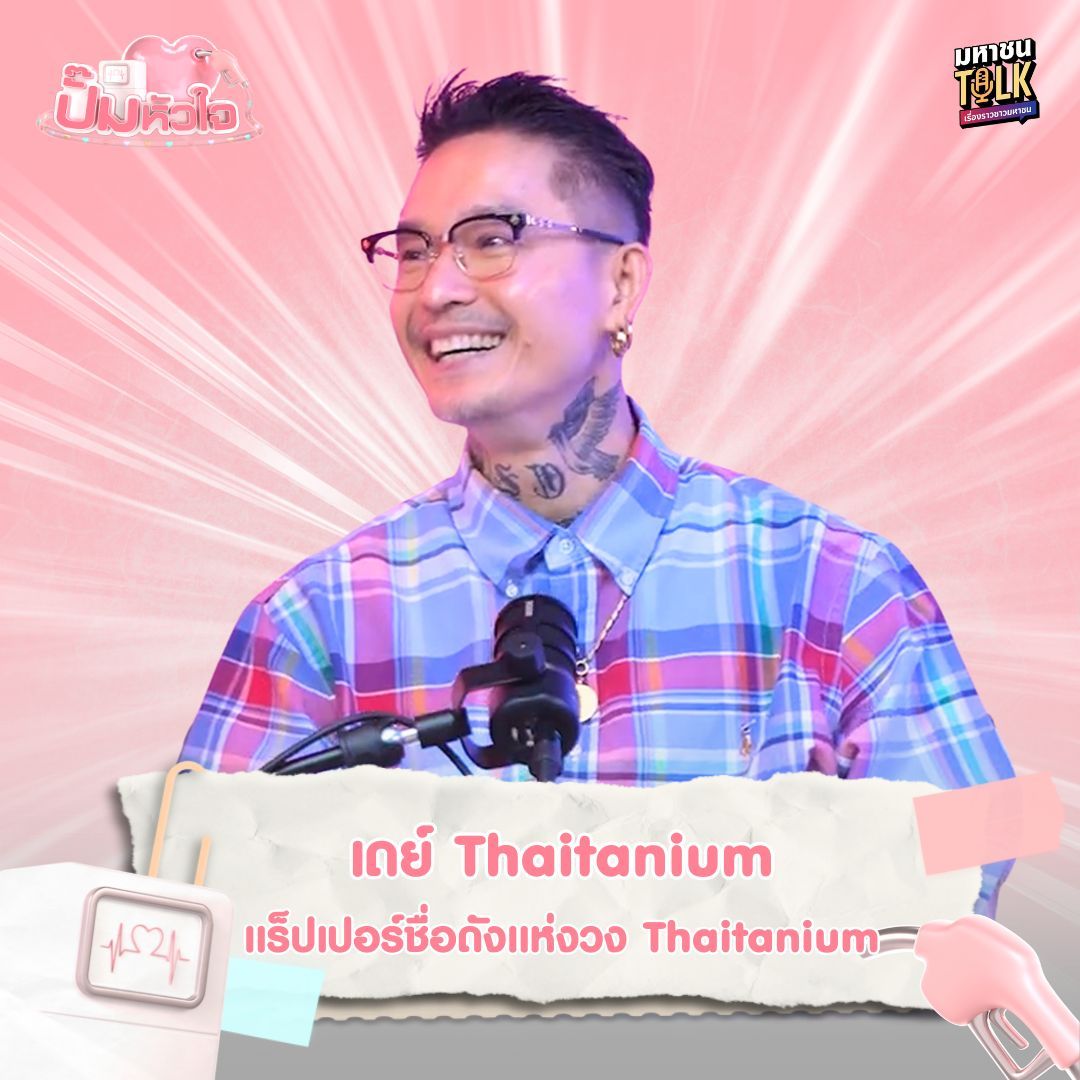 พอดแคสต์ ปั๊มหัวใจ จากโปรเจกต์ “มหาชนTalk” 2 พิธีกร แชป-วรากรศวัสกร และ รุ้ง-ราวรรณ โทนะหงษา จะพาไปเปิดใจพร้อมแชร์มุมมองดี ๆ ของ เดย์-จำรัส ทัศนละวาด หรือ เดย์ แร็ปเปอร์แถวหน้าของเมืองไทยวง Thaitaniumเดย์ย้อนเล่าจุดเริ่มต้นในวันที่ยังไม่ประสบความสำเร็จ ไม่มีเงิน ไม่มีอนาคต และเคยเกือบถอดใจจากเส้นทางดนตรีฮิปฮอป ก่อนจะฝ่าฟันอุปสรรคไปพร้อมเพื่อนร่วมวง จน Thaitanium กลายเป็นตำนานของวงการเพลงไทยในวันนี้ เรื่องราวเหล่านี้สะท้อนให้เห็นว่าความสำเร็จไม่ได้เกิดขึ้นเพียงชั่วข้ามคืน แต่เกิดจากความเชื่อ มิตรภาพ และการไม่ยอมแพ้