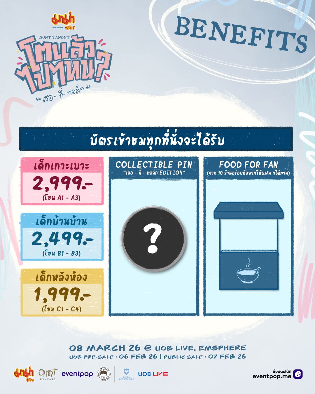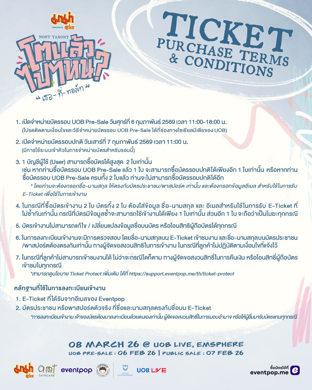 มาร่วมหาคำตอบกับ ‘นนท์ ธนนท์’ และฉลองวันเกิดครบรอบวัย 30 ปีนี้ ด้วยกันที่ งาน “มาม่า Presents NONT TANONT โตแล้วไปไหน? “เธอ-ที่-ทอล์ก” จัดแสดงในวันเสาร์ที่ 8 มีนาคม 2569 ที่ UOB LIVE, EMSPHERE บัตรราคา 2,999 / 2,499 / 1,999 บาท สามารถจับจองที่นั่งได้ ในวันที่ 6 กุมภาพันธ์ 2026 รอบ UOB Pre-Sale และรอบบุคคลทั่วไป ในวันที่ 7 กุมภาพันธ์ 2026 ผ่านทาง Eventpop หรือ https://www.eventpop.me