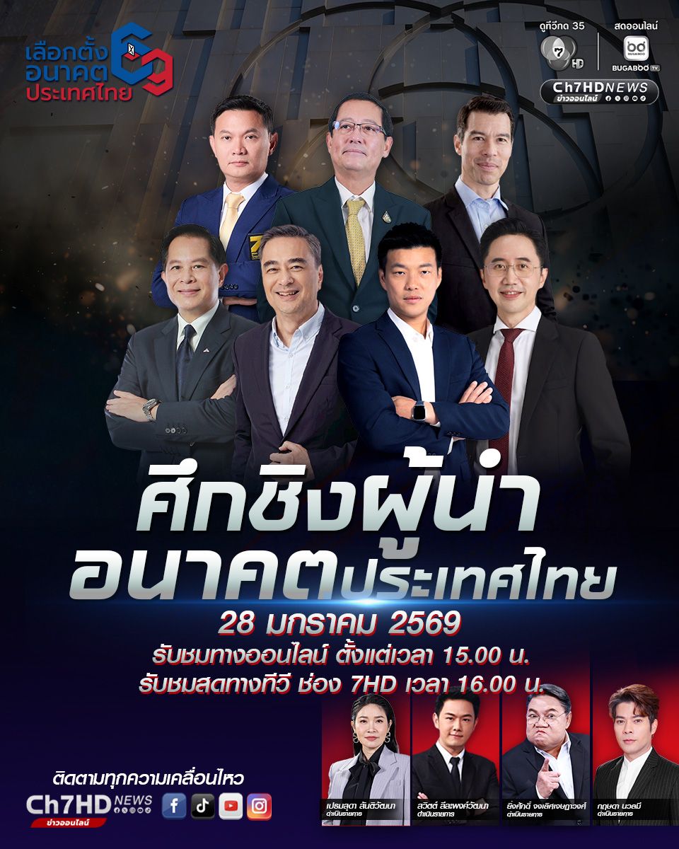 ช่อง 7HD ตอกย้ำบทบาทสื่อมวลชน เดินหน้าสร้างพื้นที่ข้อมูลคุณภาพรับศึกเลือกตั้งครั้งสำคัญของประเทศ ภายใต้แคมเปญ “เลือกตั้ง 69 อนาคตประเทศไทย” ล่าสุดจัดเต็มเปิดเวทีใหญ่เกมประชันวิสัยทัศน์ “ศึกชิงผู้นำ อนาคตประเทศไทย” เพื่อให้ประชาชนได้รับข้อมูลเชิงลึกจากตัวแทนพรรคการเมืองอย่างรอบด้าน