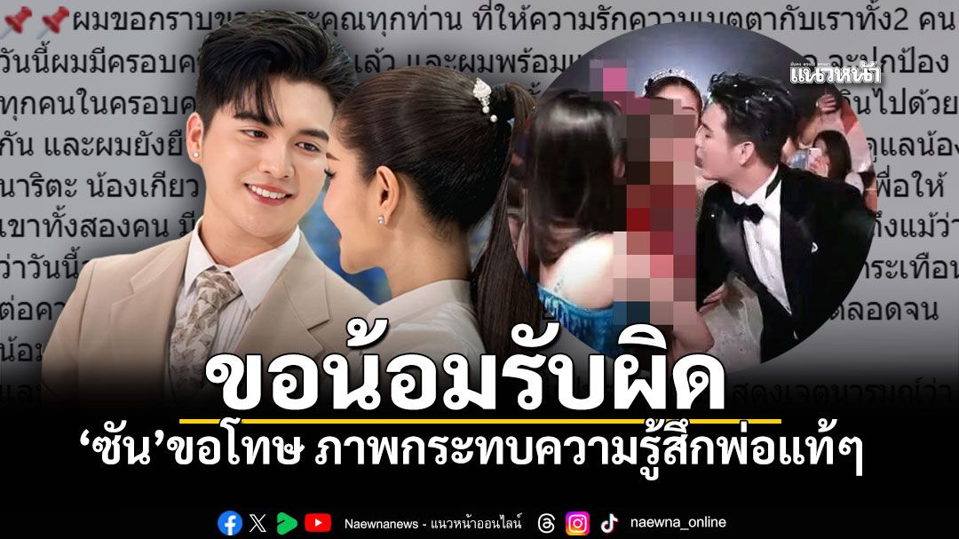 ดราม่าร้อนในวันวิวาห์ "ซัน วงศธร" เคลื่อนไหว ขอน้อมรับผิด ภาพไม่เหมาะสมกับลูกสาว "บิ๊ก ผู้ใหญ่บ้านฟินแลนด์"