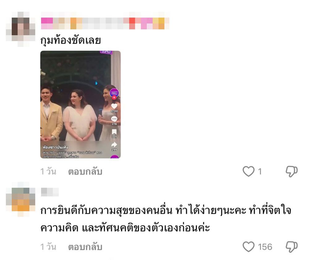 โดยหลังจากที่ แม่แอน สิเรียม ได้โพสต์ข้อความนี้ออกไปนั้นก็มีแฟนๆ เข้าไปแสดงความยินดีกันเป็นจำนวนมาก แต่ก็ไม่วายมีชาวเน็ตบางส่วนได้เข้าไปคอมเมนต์ จับผิด ตามช่องทางโซเชียลทุกแพลตฟอร์มอีกว่า ลูกสาวของแม่แอน สิเรียม นั้นกำลังมีน้องหรือเปล่า