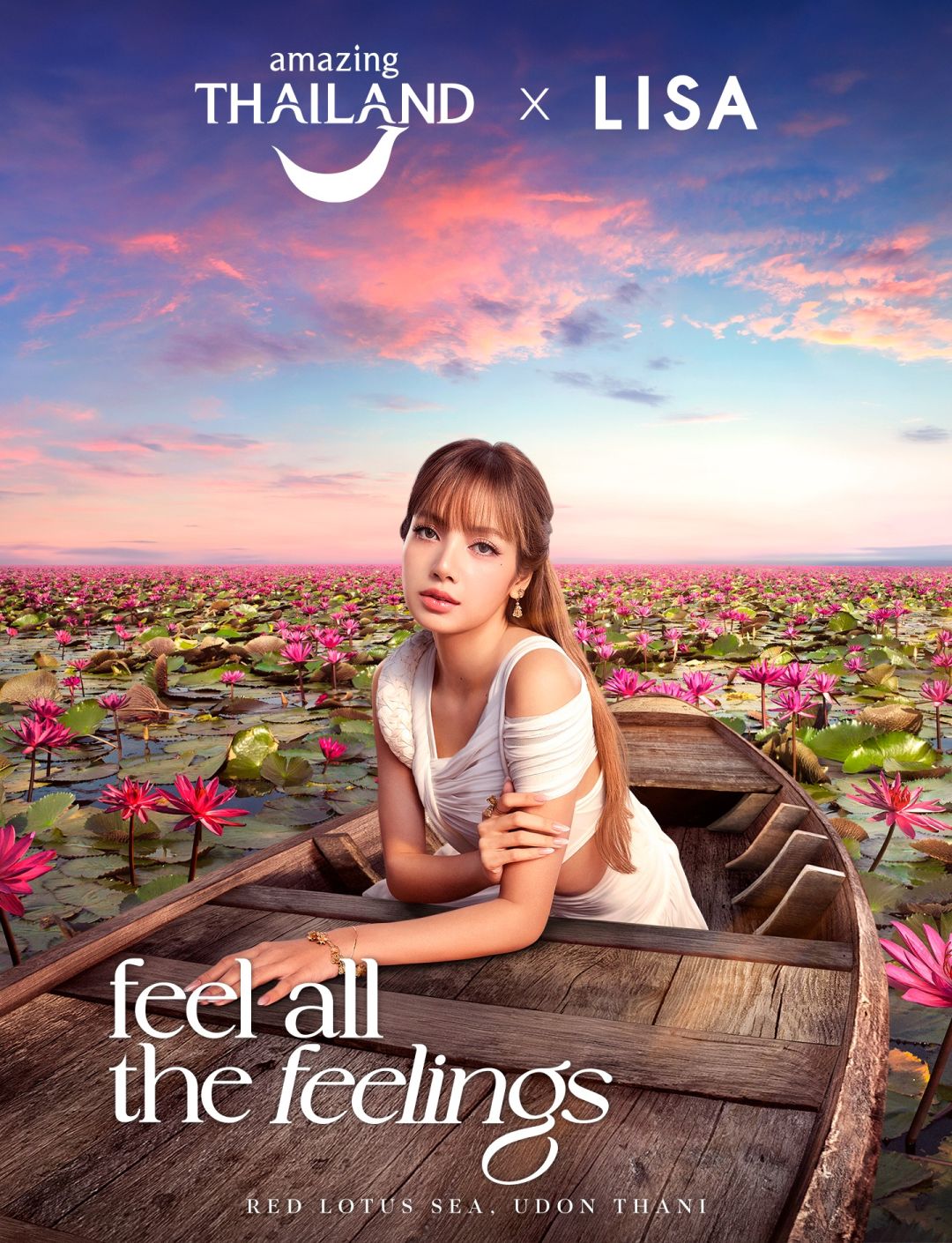 การท่องเที่ยวแห่งประเทศไทย (ททท.) ปล่อยภาพนิ่งชุดใหม่ของ "ลิซ่า ลลิษา มโนบาล" ในฐานะ Amazing Thailand Ambassador เมื่อวันที่ 20 มกราคมที่ผ่านมา เพื่อโปรโมตการท่องเที่ยวไทย โดยภาพล่าสุดเป็นภาพลิซ่าท่ามกลางความงดงามของ ทะเลบัวแดง จังหวัดอุดรธานี ถ่ายทอดเสน่ห์ธรรมชาติยามเช้า ภายใต้แนวคิด “Feel all the Feelings”