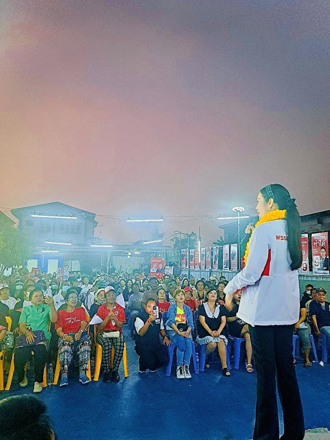 ทั้งนี้ อ๋อม สกาวใจ ได้ระบุข้อความระบุว่า “ลงพื้นที่กับพี่บรู๊คค่ะ พรรคเพื่อไทย เบอร์ 9 ผลิตสื่ออิเล็กทรอนิกส์โดย สกาวใจ พูนสวัสดิ์ เลขที่ 197 ถนนวิภาวดีรังสิต สามเสนใน เขตพญาไท กรุงเทพมหานคร 10400 จำนวน 1 ชุด ตามวันเวลาที่ปรากฏ ที่ส่งมาในครั้งนี้”