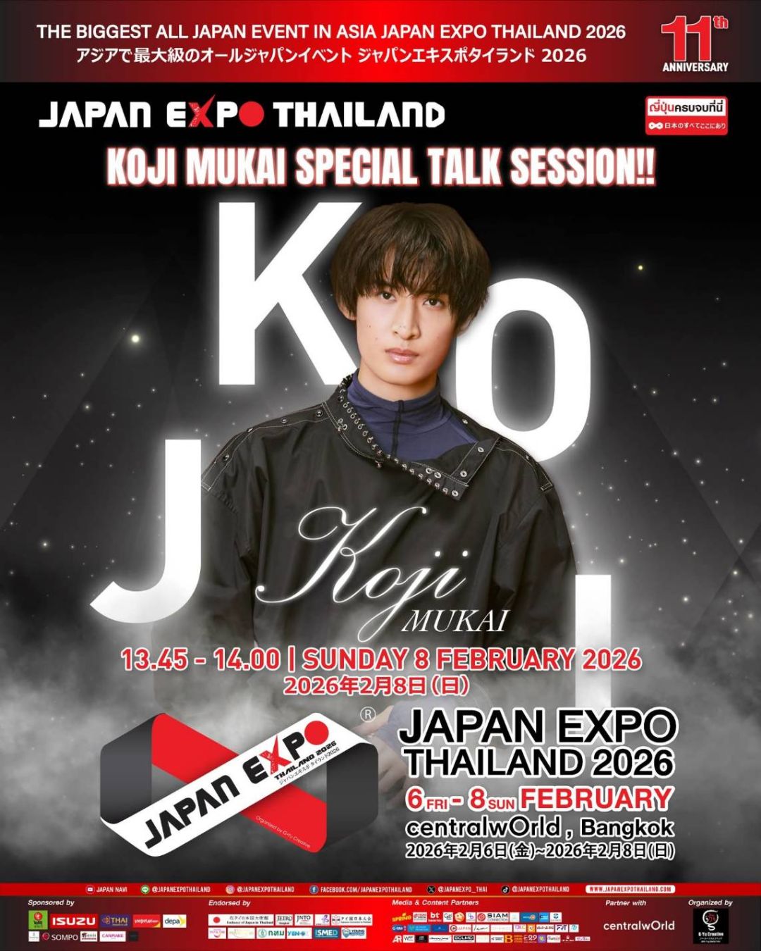 สิ้นสุดการรอคอย! ต้อนรับการกลับมาของ "โคจิ มุไก (Koji Mukai)" จากวง Snow Man ศิลปินลูกครึ่งไทย•ญี่ปุ่นมากความสามารถ จะมาสร้างรอยยิ้มให้แฟนๆกับช่วง Talk Session บนเวที JAPAN EXPO THAILAND 2026 ???????????????? พลาดไม่ได้! กับ Special Guest ที่จะมาร่วมพูดคุยบนเวที! วันอาทิตย์ที่ 8 กุมภาพันธ์ 202613:45 - 14:00KAZE STAGE (SQUARE B, OUTDOOR)