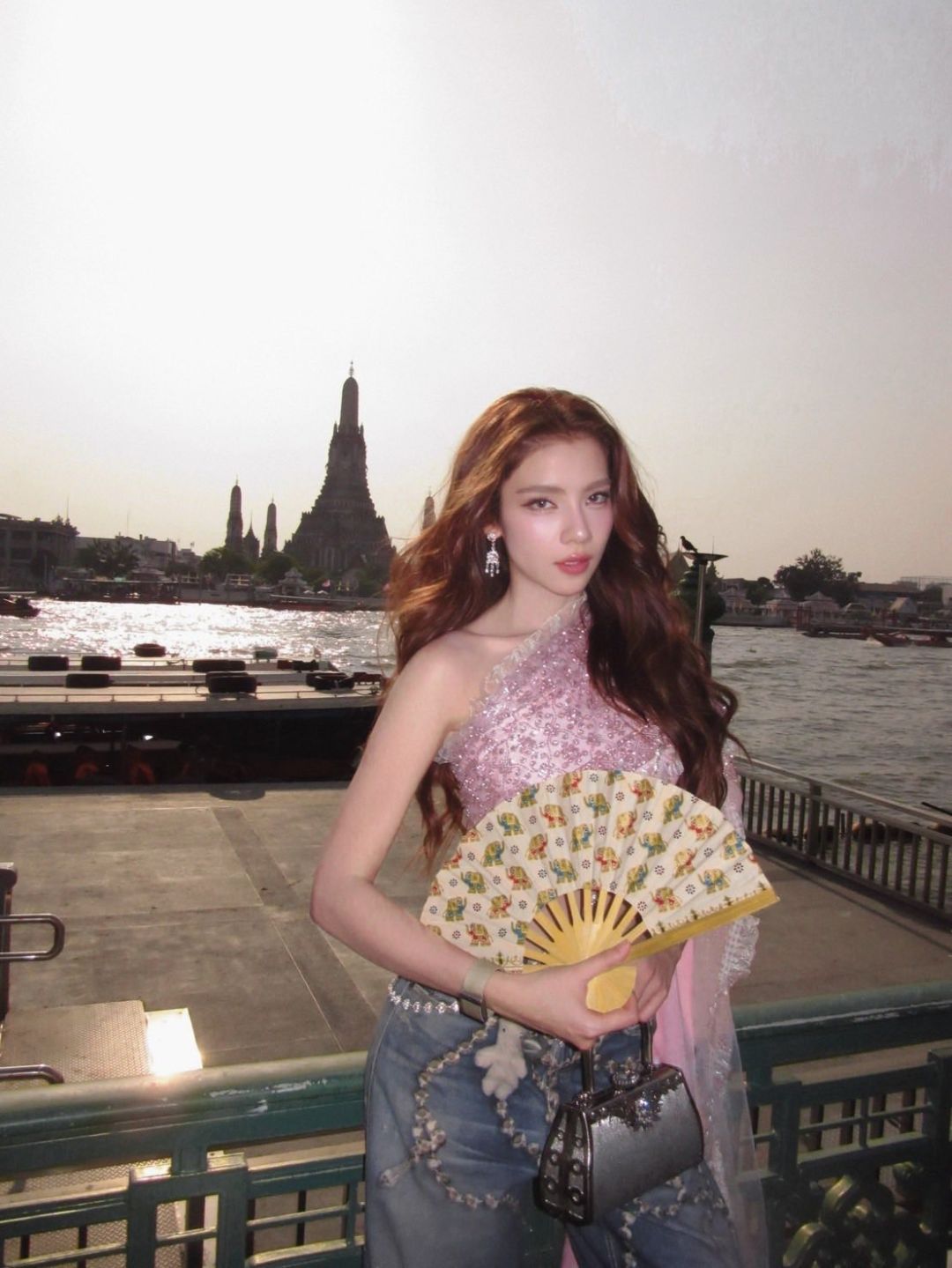 ในครั้งนี้จีน่าไม่ได้มาในชุดไทยแบบจัดเต็มตามขนบ แต่เธอเลือกที่จะ "ฉีกกฎ" การแต่งตัวด้วยการผสมผสานไอเทมต่างสไตล์เข้าด้วยกัน ด้วยท่อนบน สวมสไบสีชมพู ดีเทลละเอียดอ่อน ให้ลุคที่ดูละมุนตาและมีความอ่อนหวานแบบหญิงไทย ส่วนท่อนล่าง เบรกความหวานด้วยกางเกงยีนส์ขายาวทรงกระบอก เพิ่มความทะมัดทะแมงและความทันสมัย มาพร้อมทรงผมและแต่งหน้าสไตล์โมเดิร์น เสริมให้ลุคนี้ดูไม่เก่า แต่กลับดู "ไฮแฟชั่น" ราวกับหลุดออกมาจากรันเวย์