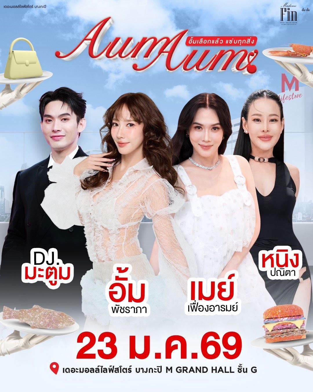 มาแล้วค่ะ งาน “AumAum” ครั้งที่ 5 วันที่ 23 มกราคม ถึงวันที่ 1 กุมภาพันธ์ ที่ M GRAND HALL ชั้น G เดอะมอลล์ไลฟ์สโตร์ บางกะปิ เปิดตลาดของ อั้ม พัชราภา ไชยเชื้อ กันอีกแล้ว อั้มมาแล้ว มาแซ่บอีกแล้ว เปิดประเดิมปีใหม่ 2026 รอบนี้จัดเต็มเหมือนเดิม จัดร้านอาหารมามากกว่า 100 ร้าน มีอาหารร้านอร่อย มาให้ชิม ให้ช้อปกันแบบจุใจ
