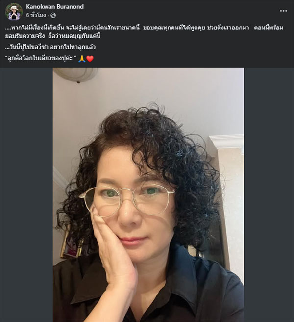ล่าสุด ปู กนกวรรณ ได้โพสต์ข้อความผ่านเฟซบุ๊กส่วนตัวระบุว่า ….หากไม่มีเรื่องนี้เกิดขึ้น จะไม่รู้เลยว่ามีคนรักเราขนาดนี้ ขอบคุณทุกคนที่ได้พูดคุย ช่วยดึงเราออกมา ตอนนี้พร้อมยอมรับความจริง ถือว่าหมดบุญกันแค่นี้ …วันนี้ปูไปขอวีซ่า อยากไปหาลูกแล้ว “ลูกคือโลกใบเดียวของปูค่ะ ”