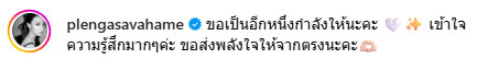 ทั้งนี้ แฟนคลับจำนวนมากยังคงร่วมส่งข้อความให้กำลังใจ พร้อมอวยพรให้นักแสดงสาวก้าวผ่านช่วงเวลานี้ไปได้อย่างเข้มแข็ง และกลับมายิ้มได้อีกครั้งในเร็ววัน